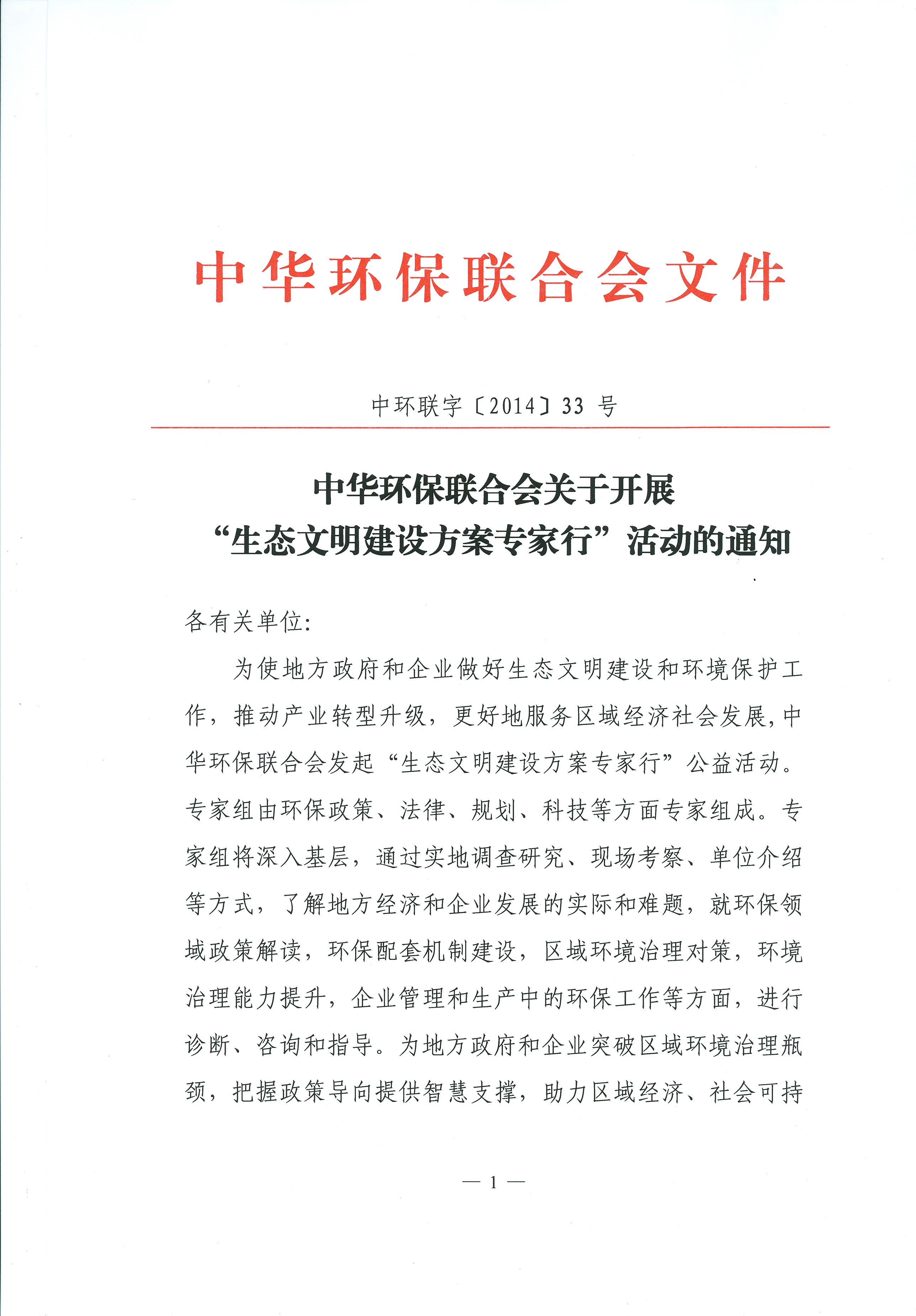 关于开展“生态文明建设方案专家行” 活动的通知