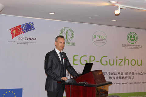 “中欧环境公共治理项目”是由欧盟资助中国在环境公共治理领域开展的项目,其目标是通过加强环境领域政府职能、公众参与和企业责任推进环境保护和可持续发展。“中欧环境治理项目-贵州:推动贵州环境司法发展、维护贵州公众环境权益”,作为中欧环境治理项目15个地方合作伙伴项目之一,总预算为120 万欧元,实施期为2012 年10 月至2015年3月。实施以来,项目工作人员相继在贵州开展基线研究,赴欧洲进行政策交流访问,多次举办能力建设培训会、研讨会,提交的政策建议分别被《新环保法》和《贵州省生态文明建设促进条例》采纳,完成了《环境损害评估与赔偿的立法与实践》在内的多个研究报告。