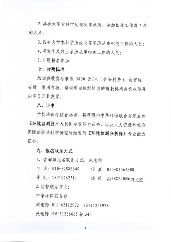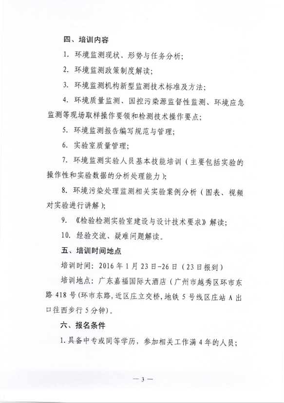 中华环保联合会关于举办《环境监测技术人员》2016年第一期专业能力培训的通知