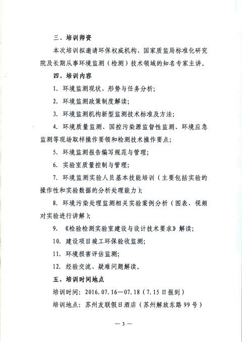 中华环保联合会关于举办《环境监测技术人员》2016年第十六期专业能力培训班的通知