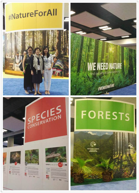 会议期间,我会谢玉红副秘书长还率团参观了大会展览中心物种保护、淡水保护、森林保护、海洋及岛屿保护、地球保护、企业与生物多样性、自然为大家与美国馆等八大主题展馆,了解世界各地进行自然保护的工作动态和最新成果、分享联合会为保护自然生态推动可持续发展所做的探索与努力,并与来自世界各地的参展机构进行亲切友好的合作洽谈。