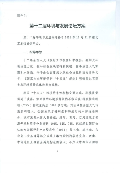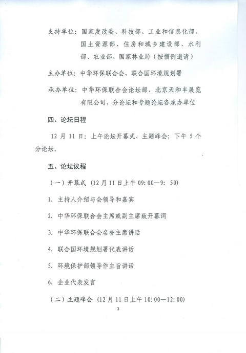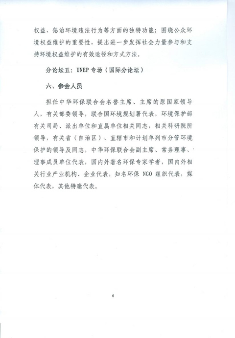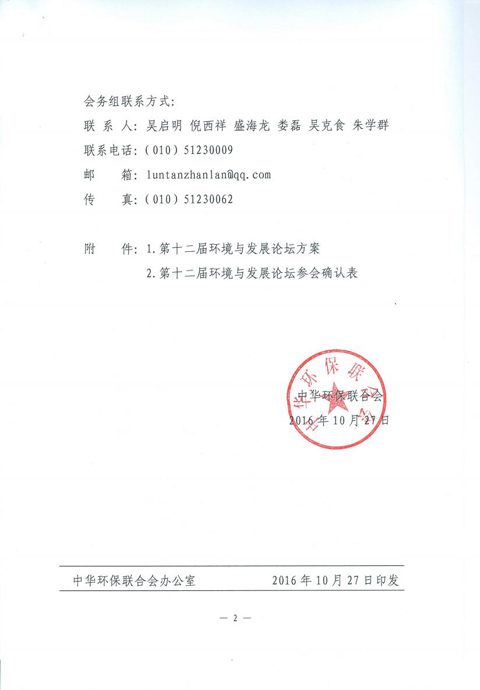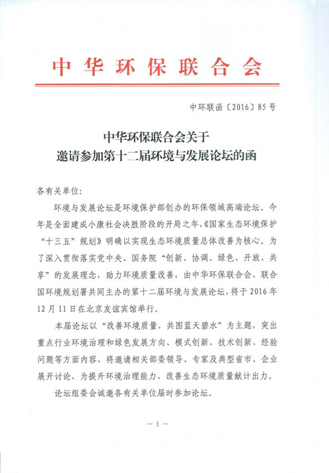 中华环保联合会关于邀请参加第十二届环境与发展论坛的函