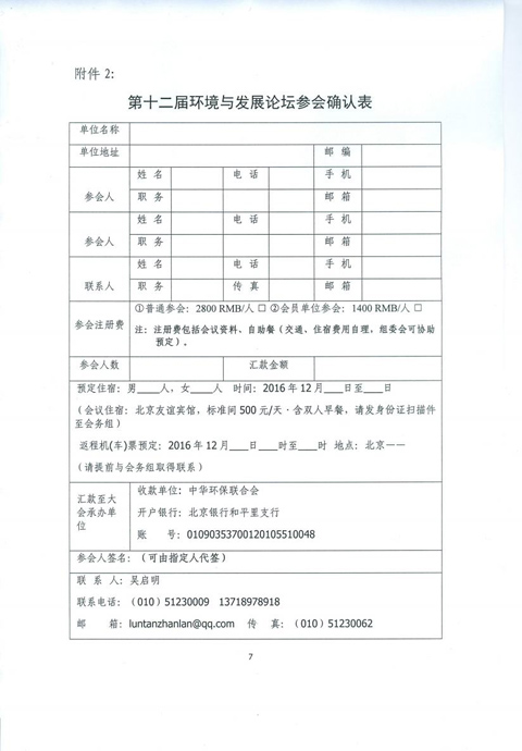 第十二届环境与发展论坛参会确认表