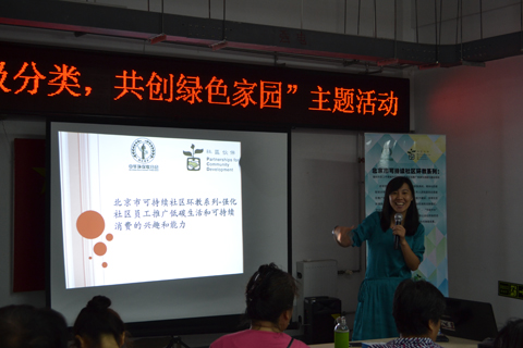 继“8.1广百西路社区‘垃圾分类’主题培训活动”后,我会“北京市可持续社区环教系列——强化社区员工推广低碳生活和可持续消费的兴趣和能力”项目活动于8月4日走进翠城福园社区。