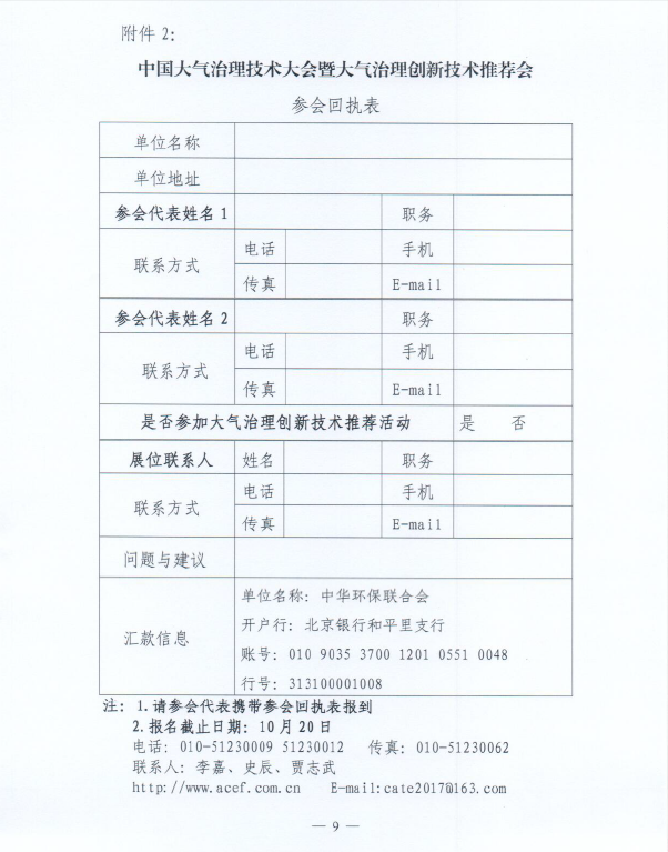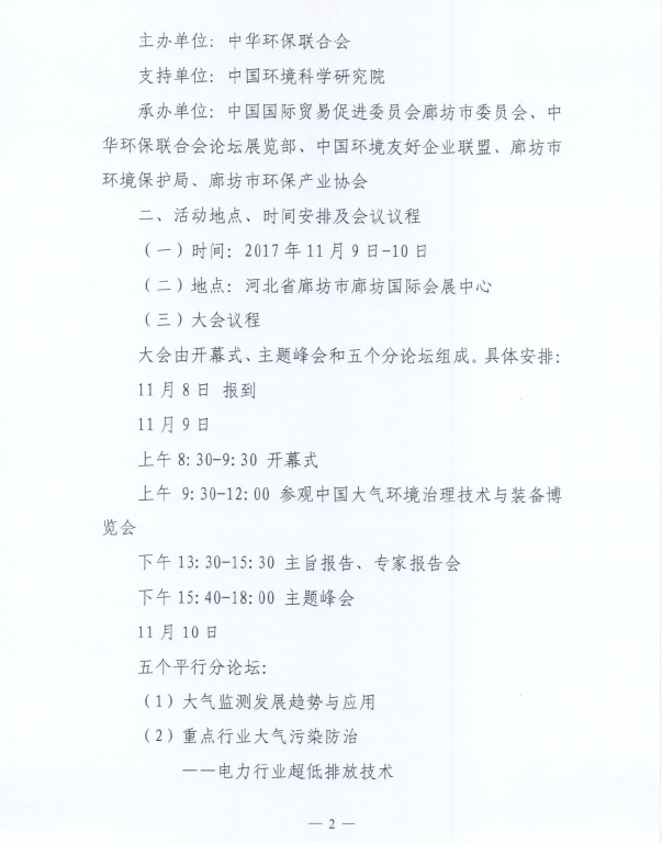 关于举办“中国大气治理技术大会暨大气治理创新技术推荐会”的通知