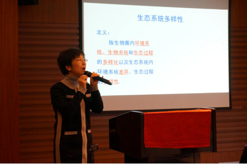 中央民族大学生命与环境科学学院石莎教授介绍了生态系统多样性及保护生态系统的相关知识。