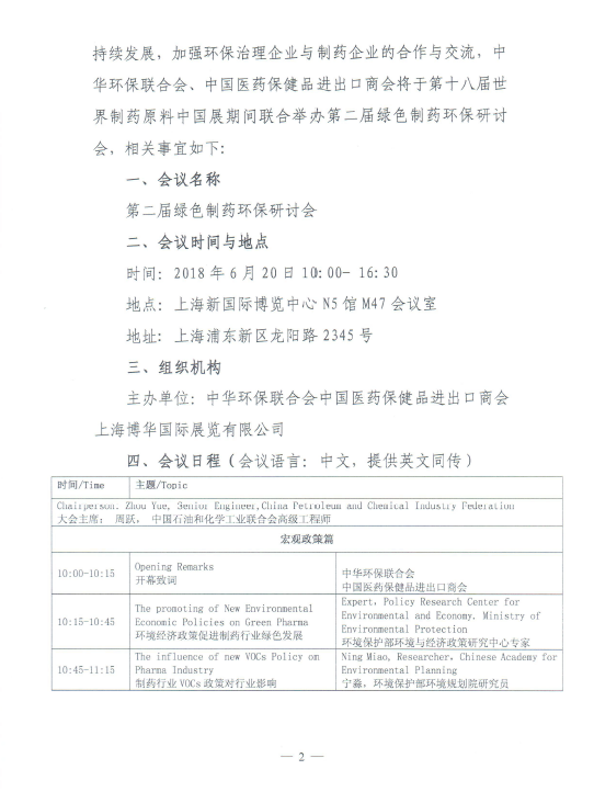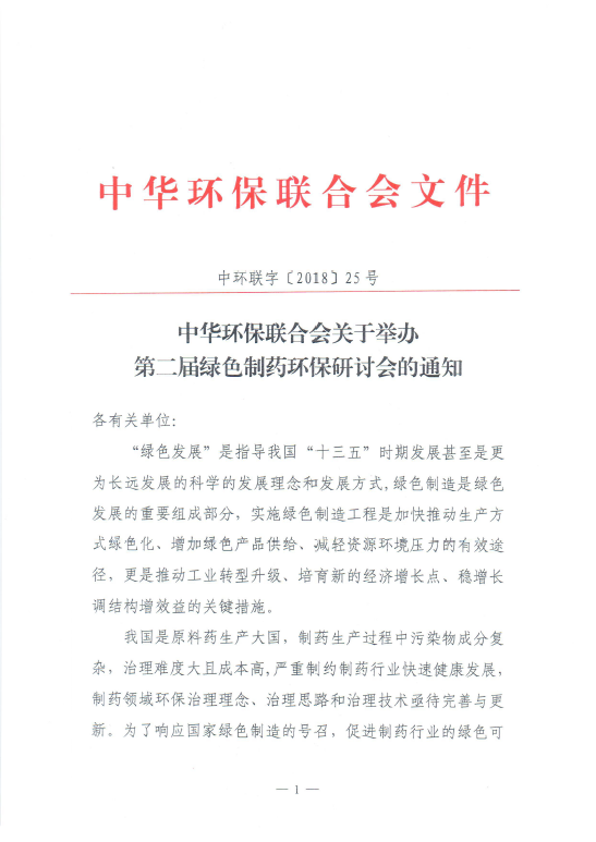 关于举办第二届绿色制药环保研讨会的函