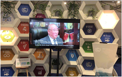 除积极参与气候大会现场各类国际交流活动、代表中国环境民间组织发声之外,中华环保联合会还与上海环境能源交易所合作,为本次大会制作了“Tackling Climate Change:Voice from China”视频短片,以重要案例和关键人物访谈结合的方式,展现了今年中国政府和民间机构在应对气候变化方面开展的坚实行动。该短片在大会期间联合会主办的边会以及部分展区中进行了展播,并在大会闭幕日于联合国气候变化公约秘书处官方区域进行了滚动播出。