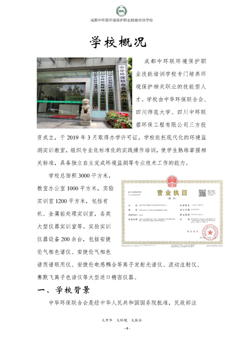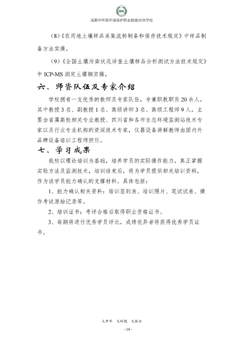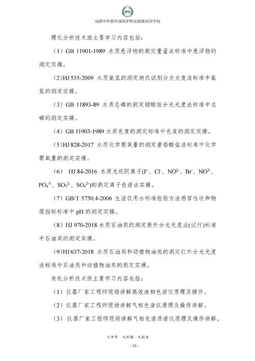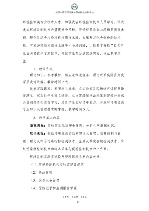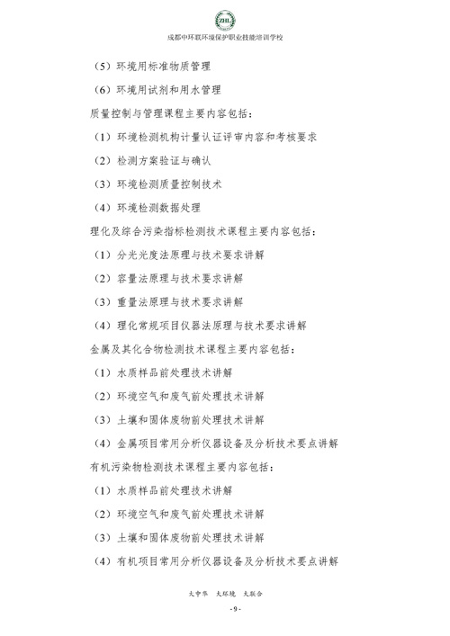 成都中环联环境保护职业技能培训学校生态环境监测实操技能培训班招生简章