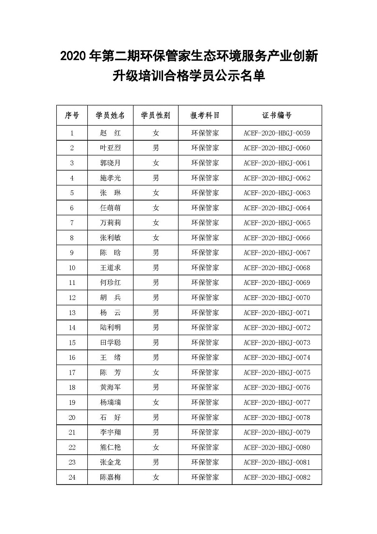 2020年第二期环保管家生态环境服务产业创新升级培训及2020年第一期排污许可证与企业环境风险隐患排查培训合格学员公示名单