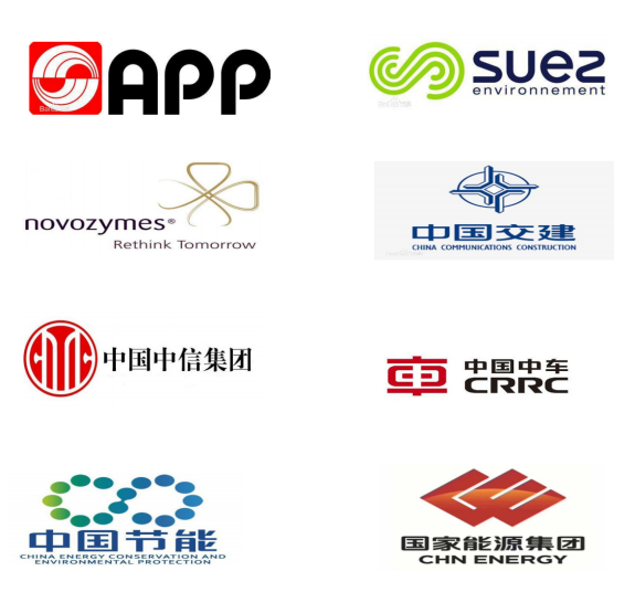 金光集团、苏伊士环境集团、诺维信、中国中交集团、中国中信集团、中国中车集团、中国节能集团、国家能源集团等世界500强企业。