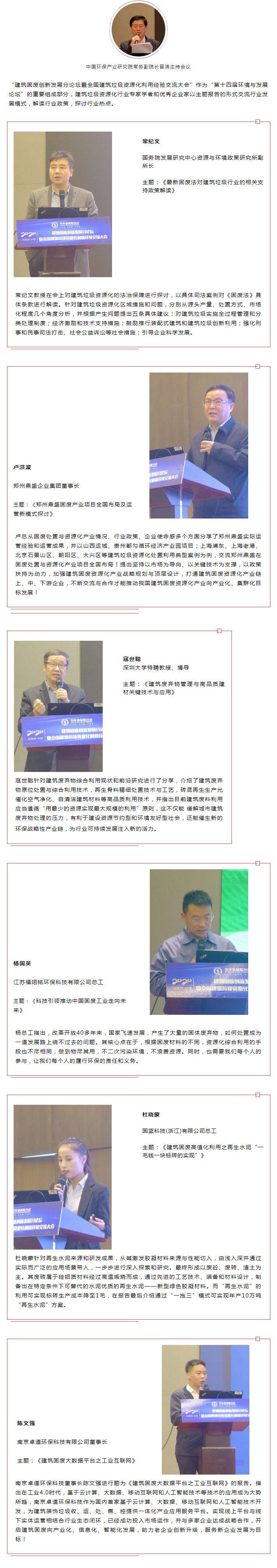 中华环保联合会固危废及土壤污染治理专业委员会常务副秘书长高原,江苏省城市科学研究会副会长、中国城市规划学会副理事长、江苏省住建厅原巡视员张泉,中国环保产业研究院常务副院长翟滨、国务院发展研究中心资源与环境政策研究所副所长常纪文、深圳大学特聘教授、博导寇世聪、湖南大学教授黄靓、中国建材研究总院教授何更新、郑州鼎盛企业集团董事长卢洪波等领导嘉宾及来自全国各地的数百名企业家代表出席会议。