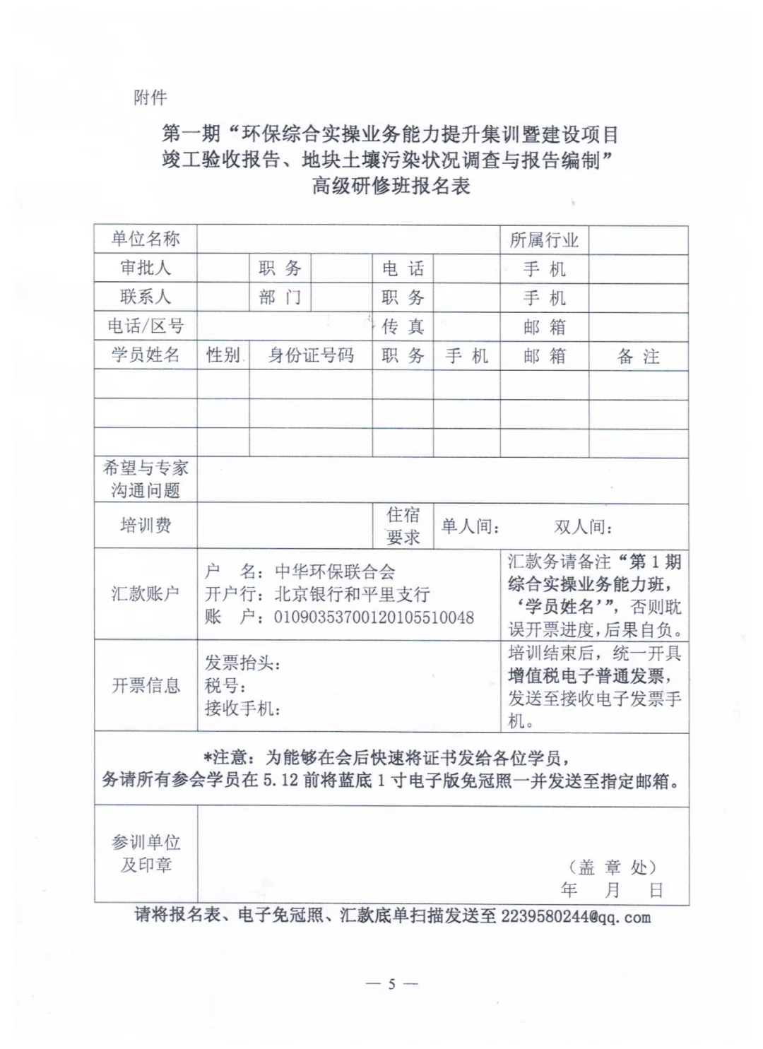 关于举办第一期“环保综合实操业务能力提升集训暨建设项目竣工验收报告、地块土壤污染状况调查与报告编制”高级研修班的通知