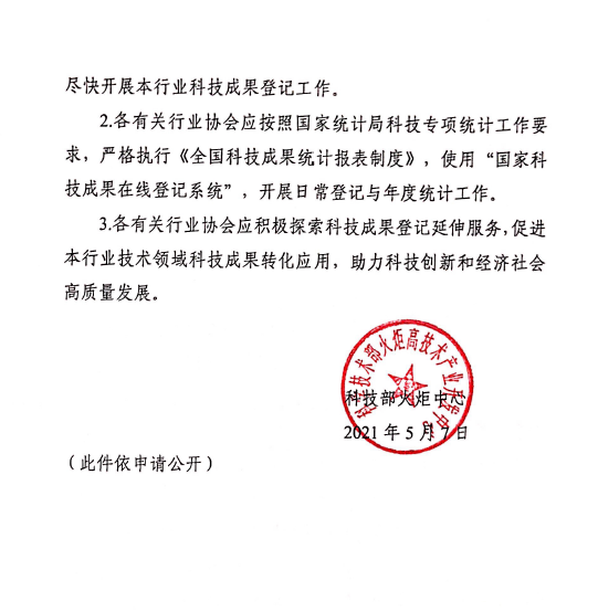 近日,科学技术部火炬高技术产业开发中心下发了《关于同意中国农学会等5家行业协会为科技成果登记机构的函》,由我会牵头申报的科技科技成果登记机构申请已正式获批,这标志着我会正式进入科技成果登记体系行列。