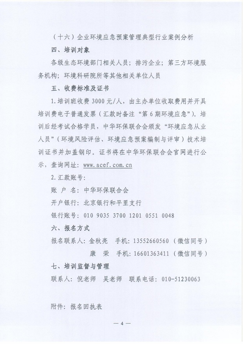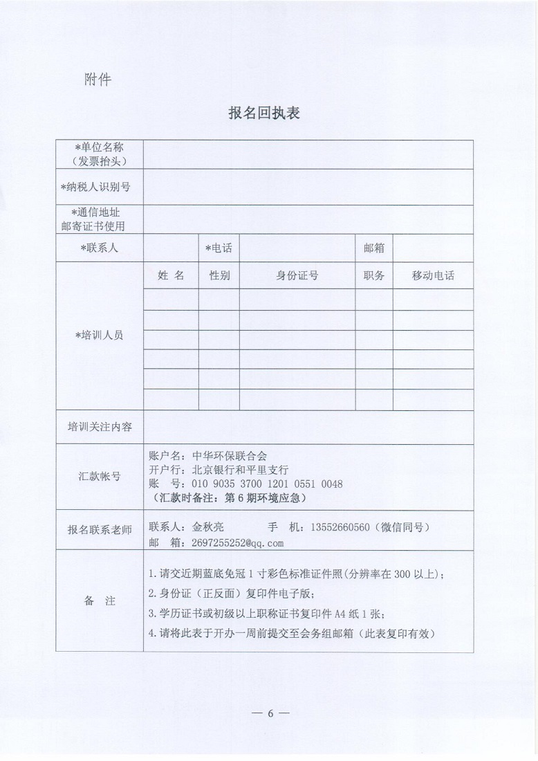 关于举办2021年第6期“环境应急从业人员”(环境风险评估、环境应急预案编制与评审)技术培训班的通知