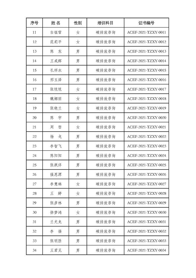 2021年第5期“碳排放管理(碳排放交易员、碳排放咨询员)技术培训班”合格学员公示