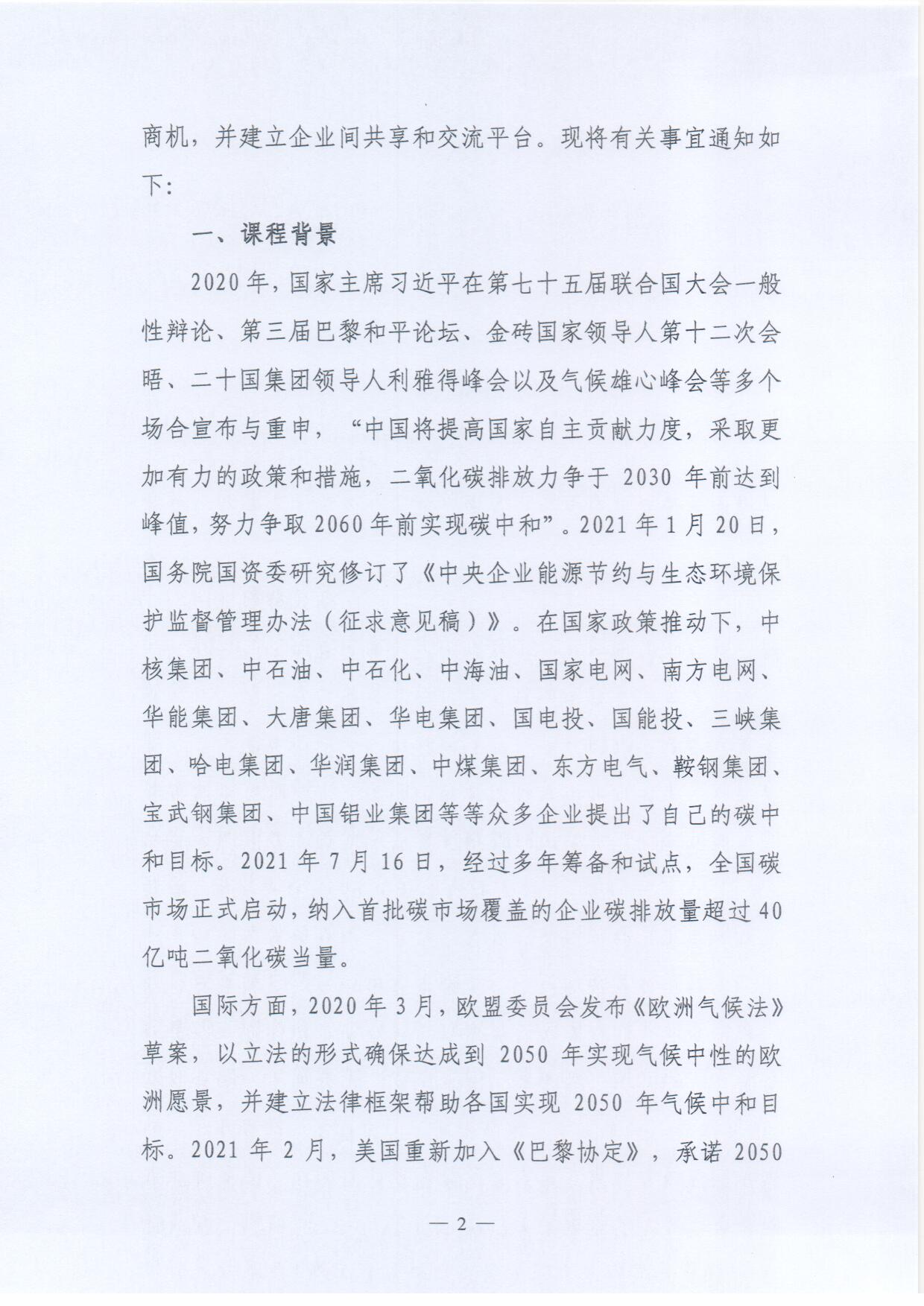 关于举办“碳达峰碳中和”能力建设、企业与产品生命周期评价(LCA)培训班的通知
