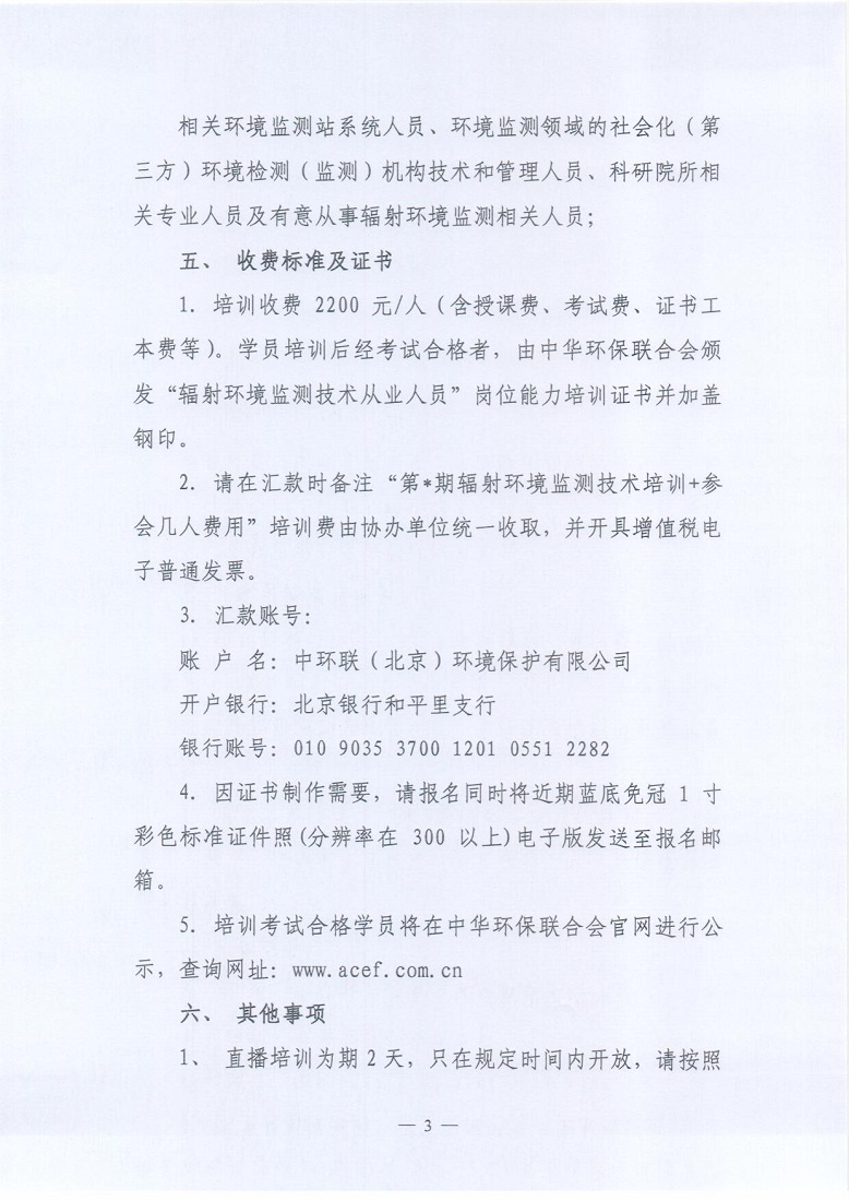 关于举办2021年第3期“全国辐射环境监测从业人员技术培训班”的通知