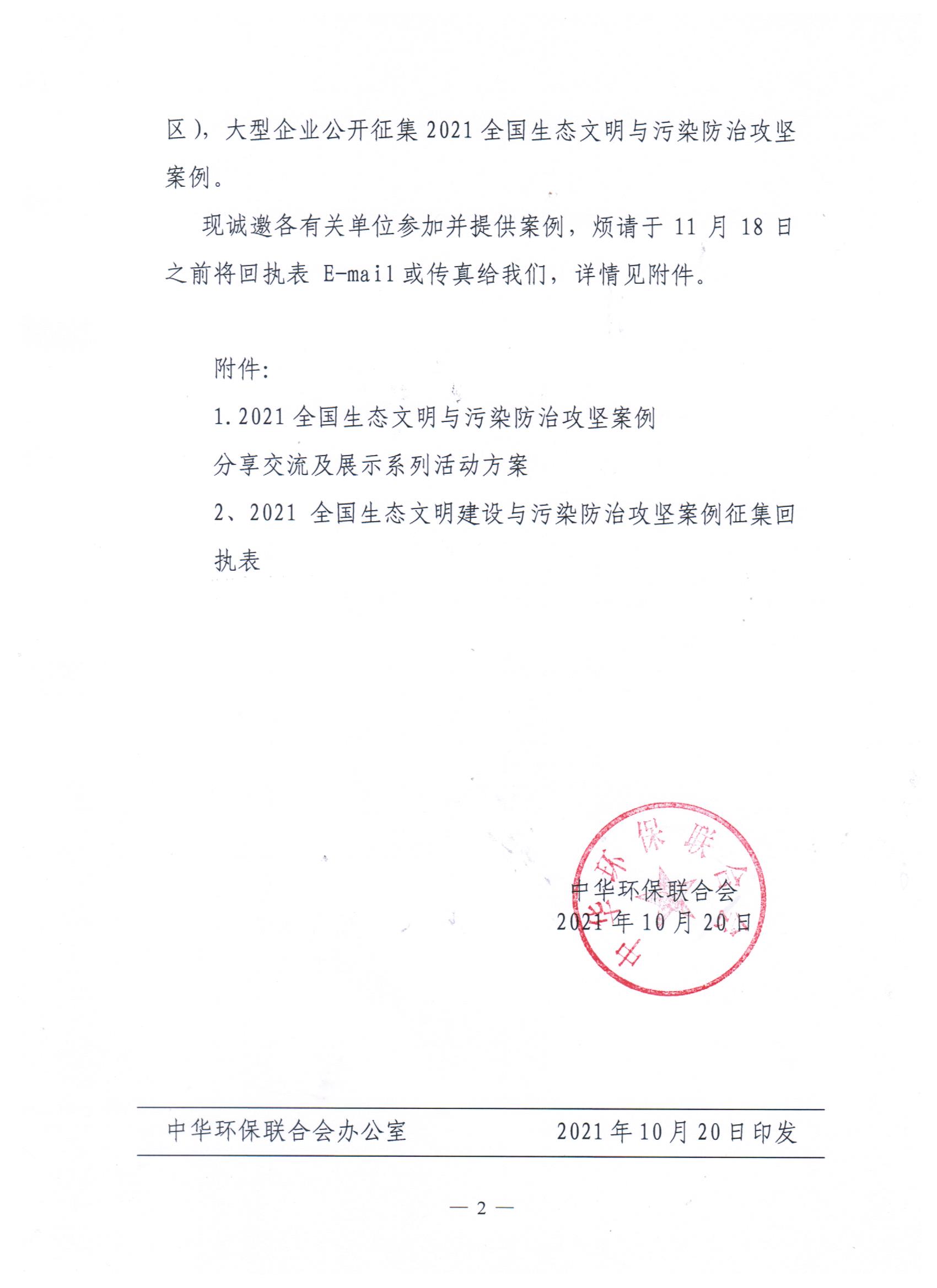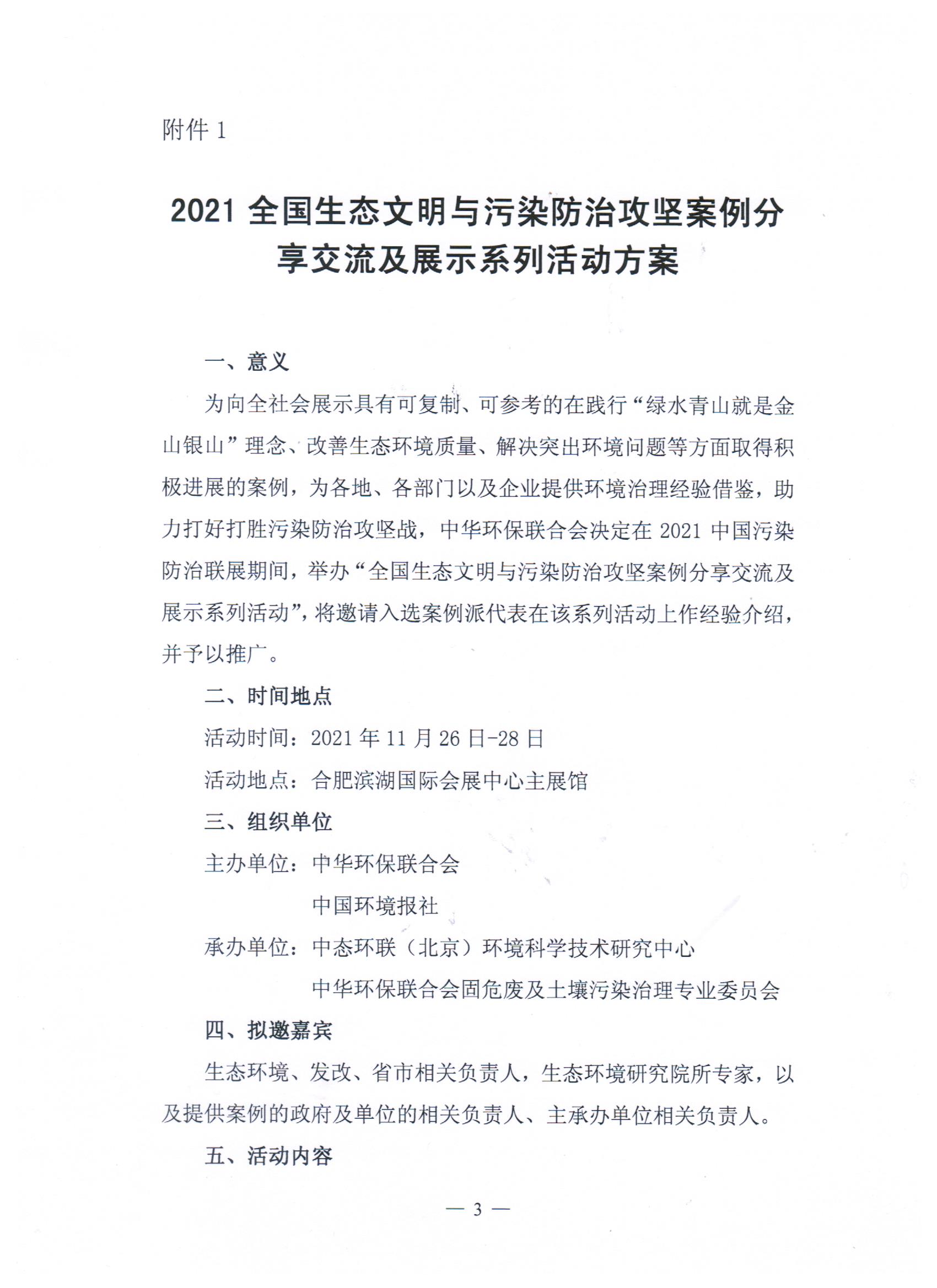 关于开展2021全国生态文明与污染防治攻坚案例分享交流与宣传推广活动的通知