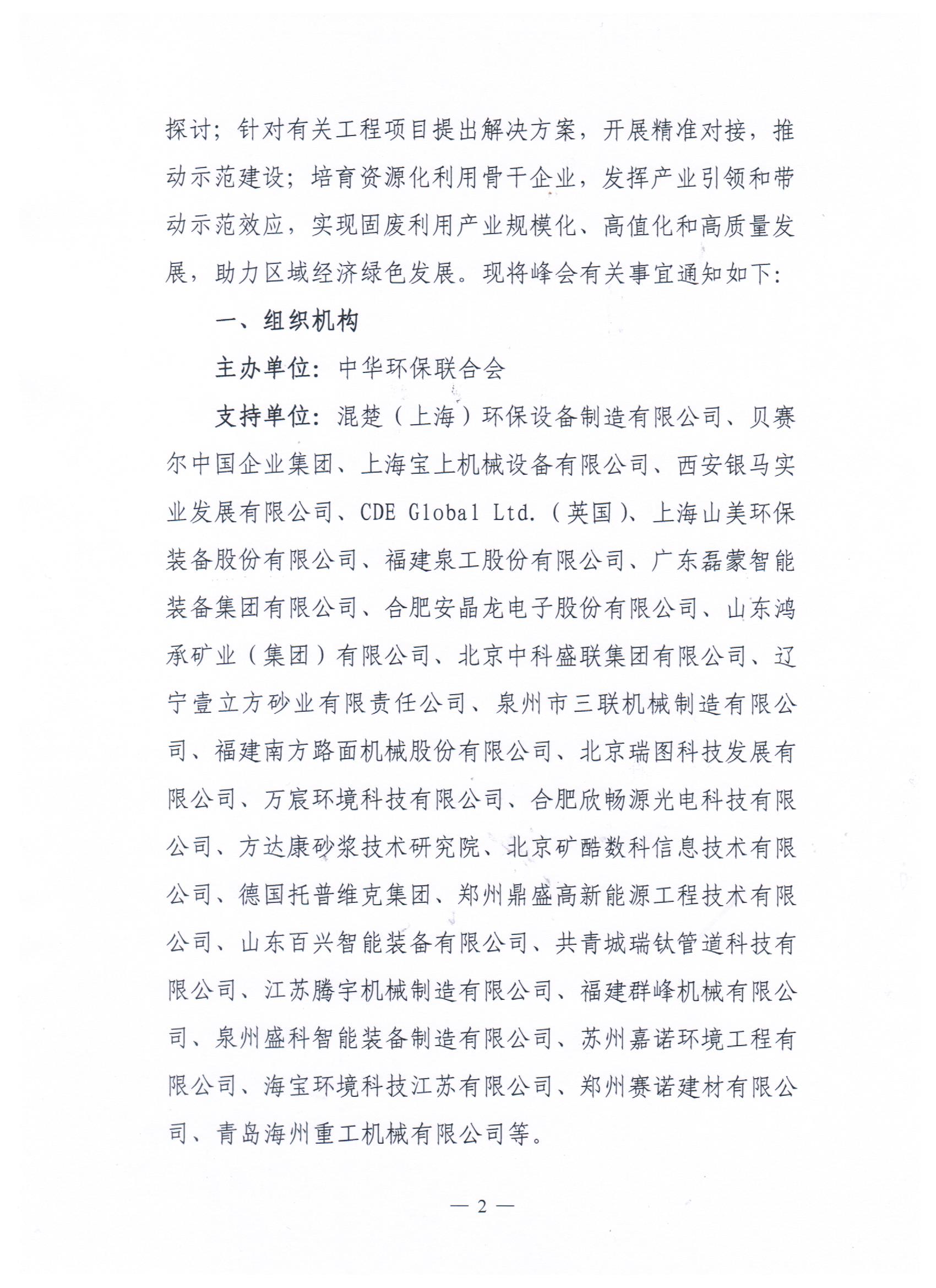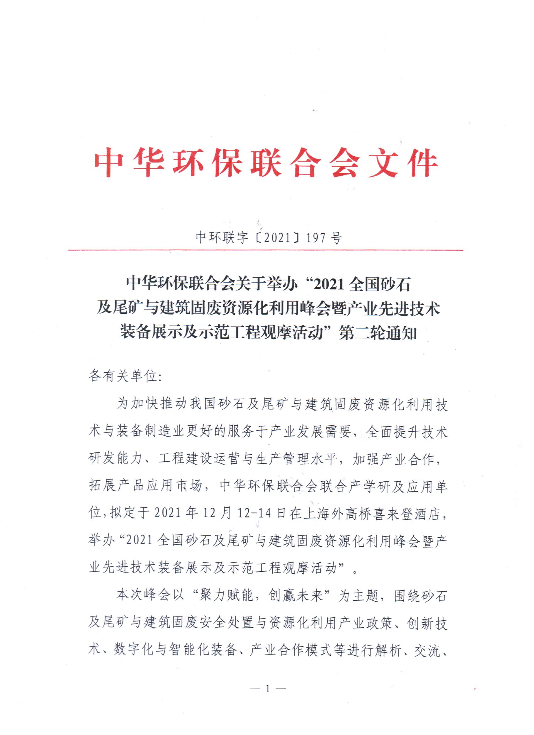 关于举办“2021全国砂石及尾矿与建筑固废资源化利用峰会暨产业先进技术装备展示及示范工程观摩活动”第二轮通知