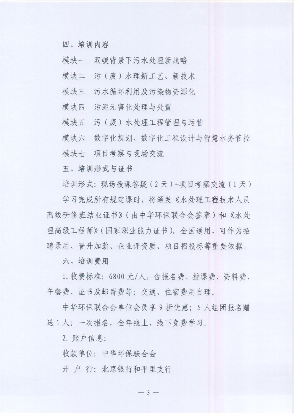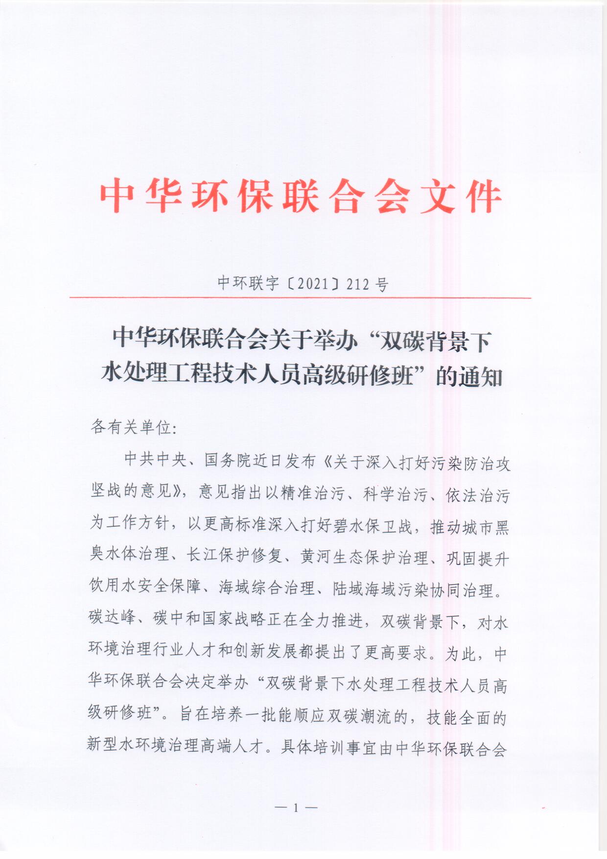 关于举办“双碳背景下水处理工程技术人员高级研修班”的通知