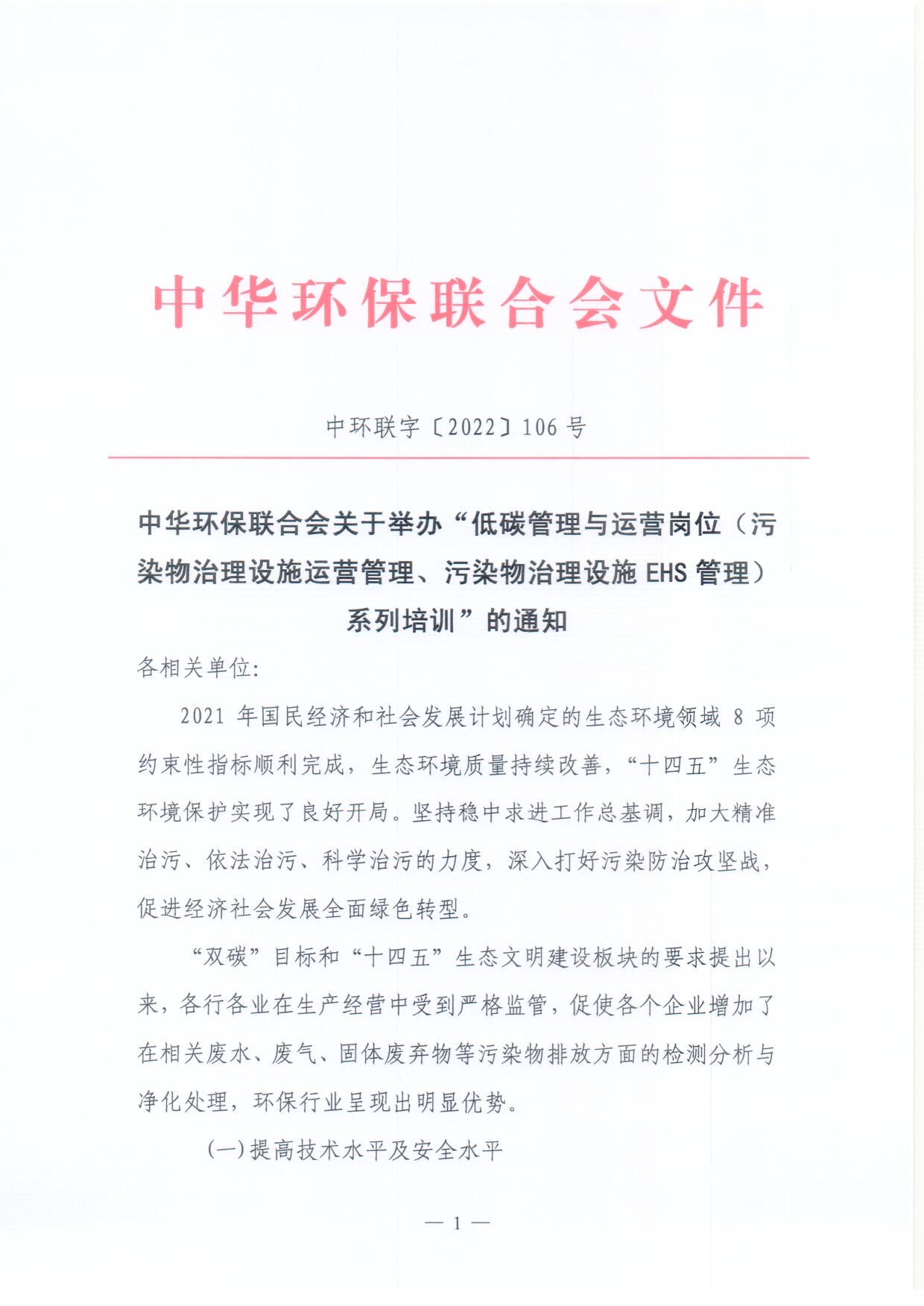 关于举办首次“低碳管理与运营岗位(污染物治理设施运营管理、污染物治理设施EHS管理)系列培训”的通知