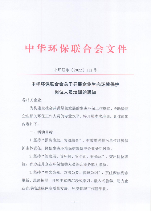 关于开展企业生态环境保护岗位人员培训的通知