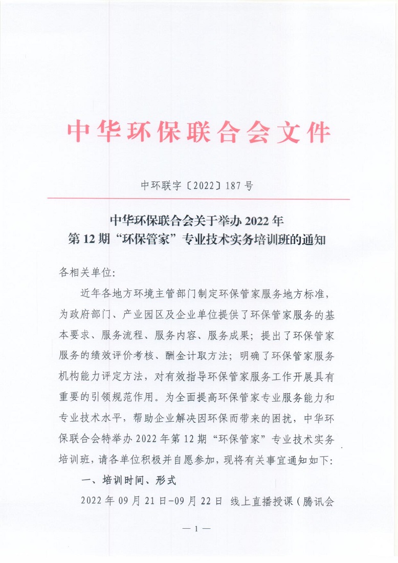 关于举办2022年第12期“环保管家”专业技术实务培训班