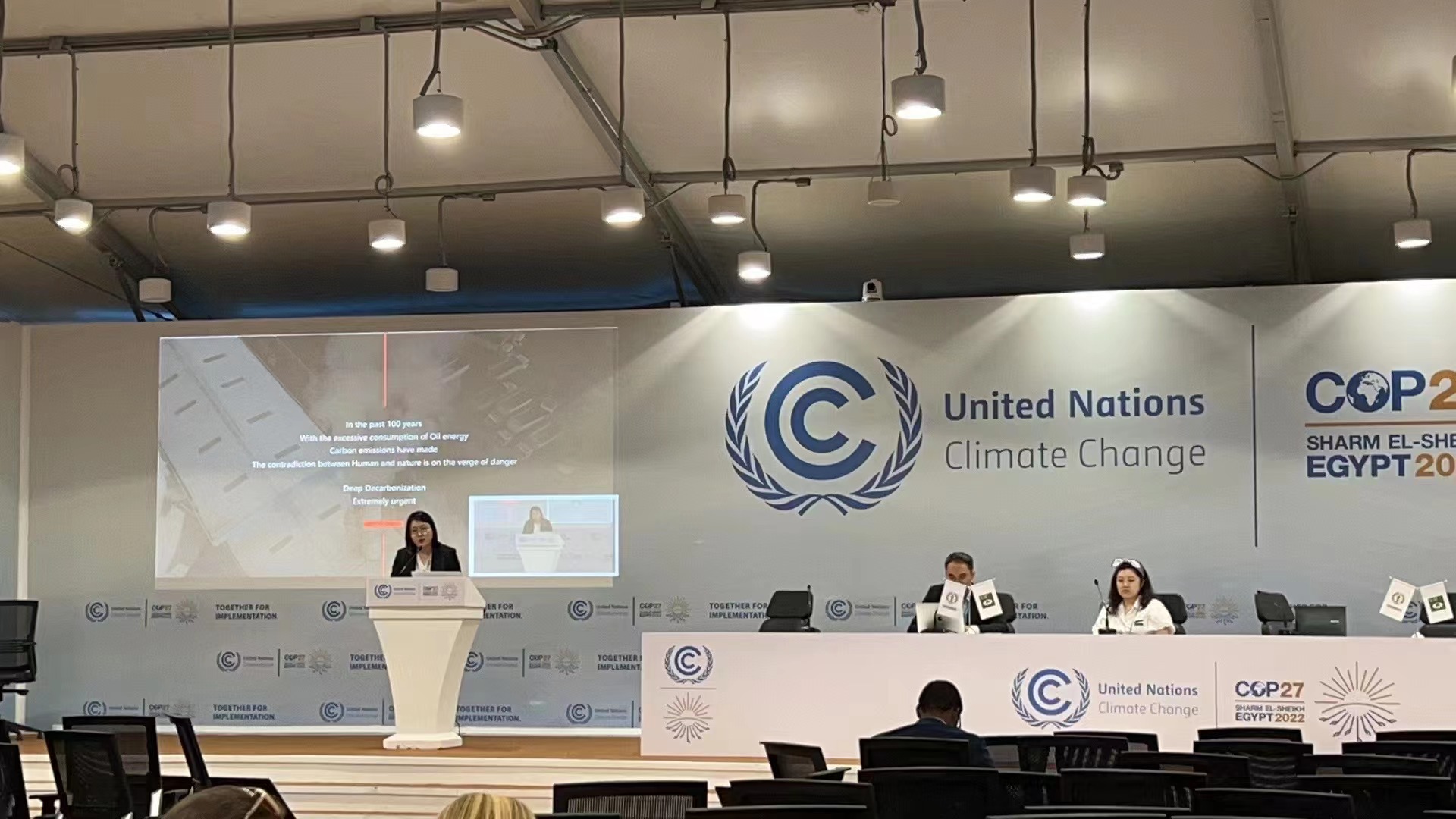 埃及时间11月12日下午,中华环保联合会于《联合国气候变化框架公约》第二十七次缔约方大会第四官方边会会议室举办了“生态文明与应对气候变化”主题边会,中央社会主义研究院陆琼博士、北京市丰台区教委杨晓辉主任、北京市第十八中学校长管杰、北京市第十八中学马艺原同学以及专注生态保护、可持续能源、塑料污染治理等领域的行业组织、企业代表线上、线下出席了会议,并作了主题分享,旨在为更好的向国际社会传播生态文明理念,促进重要环境议题与应对气候变化之间的协同。中华环保联合会副秘书长李瑞东致辞发言,会议由中华环保联合会国际部副部长倪垚主持。