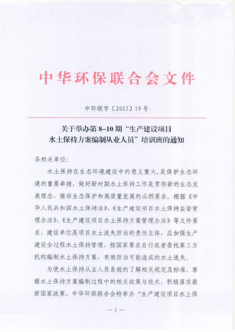 关于举办第8-10期“生产建设项目水土保持方案编制从业人员”培训班的通知
