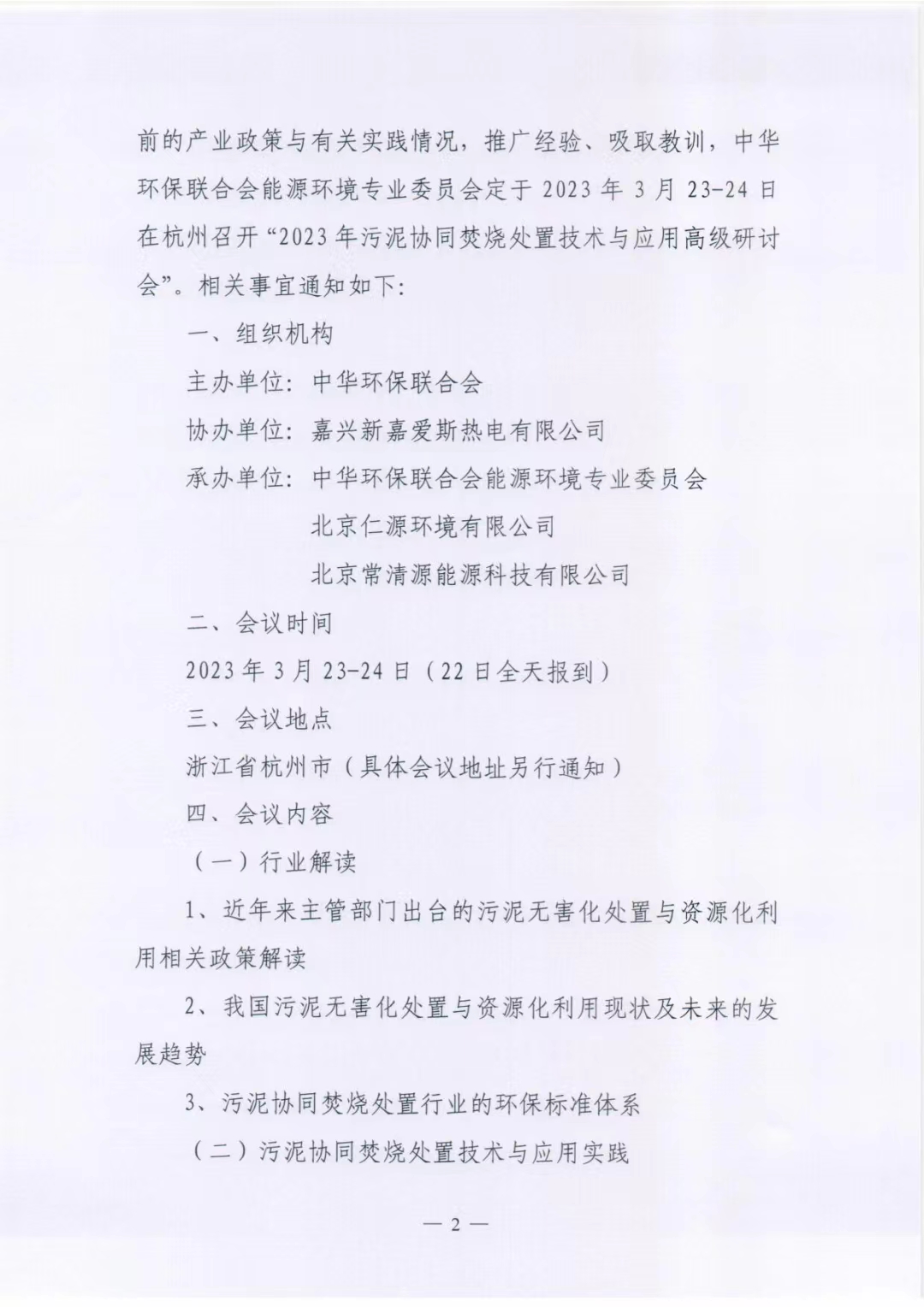 关于举办2023年污泥协同焚烧处置技术与应用高级研讨会的通知