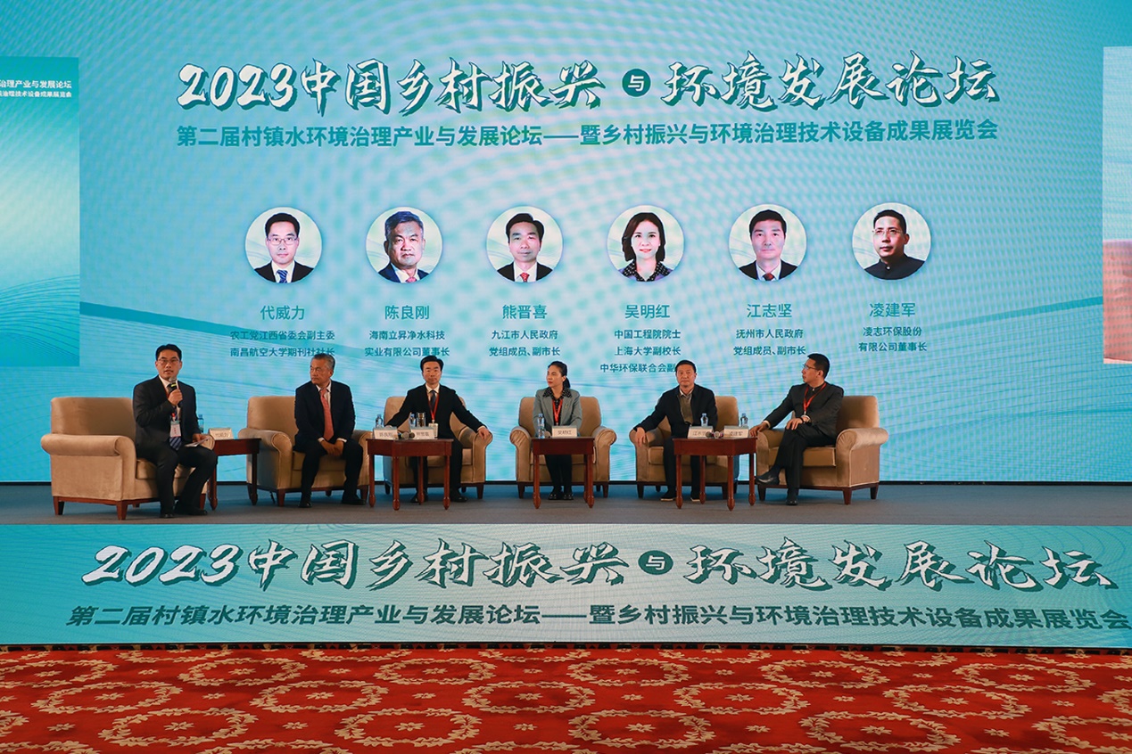 中国工程院院士、同济大学教授徐祖信、中国工程院院士、南京大学环境学院院长任洪强、中国工程院院士、南昌大学食品与技术国家重点实验室主任谢明勇、农工党中央委员、国务院发展研究中心资源环境所副所长常纪文、江西省生态环境厅党组成员、副厅长龙刚、江西省乡村振兴局党组成员、副局长勒系永、江西省水利厅二级巡视员钱荣明、四川省大英县委书记、二级巡视员胡铭超、贵州清风环保技术研究院院长付顺坤、江苏泰源环保科技股份有限公司总经理潘海龙、云南合续环境科技股份有限公司总裁李文生、佛山市玉凰生态环境科技有限公司董事长邱建贺、凌志环保股份有限公司董事长凌建军分别就“改善农村人居环境、建设美丽健康乡村”等话题进行了精彩分享,相互交流乡村振兴、环境发展经验,共同为乡村治理、水污染防治贡献智慧和力量。