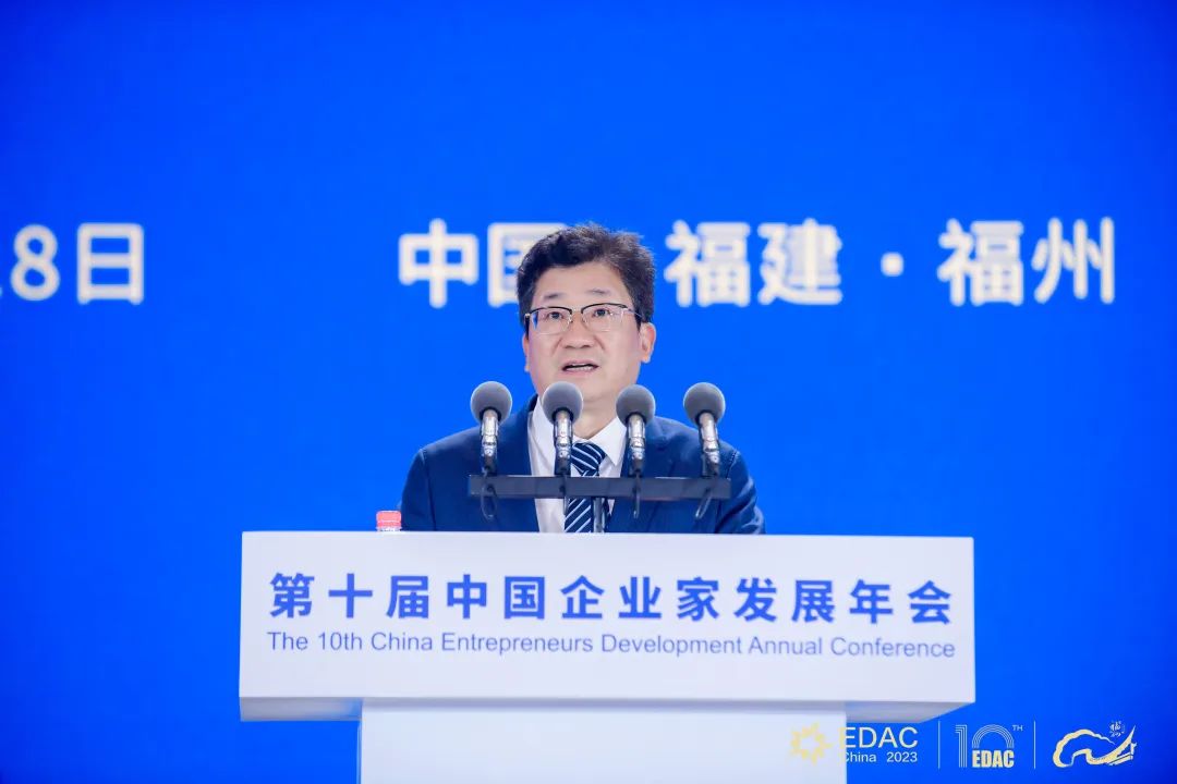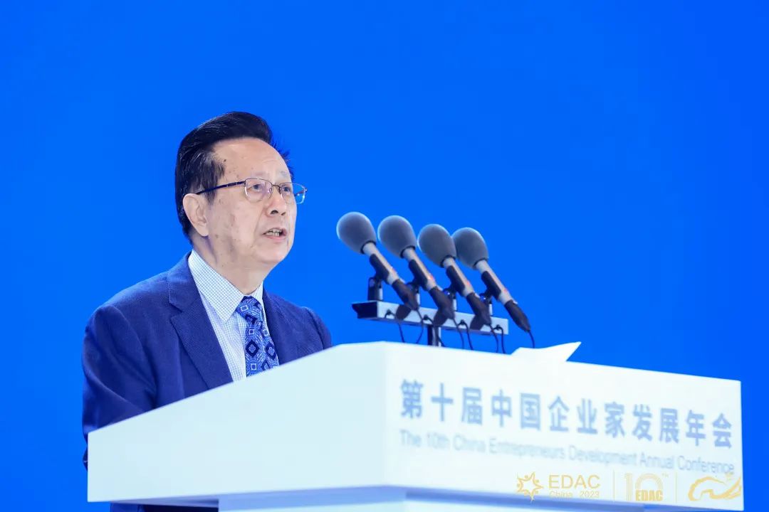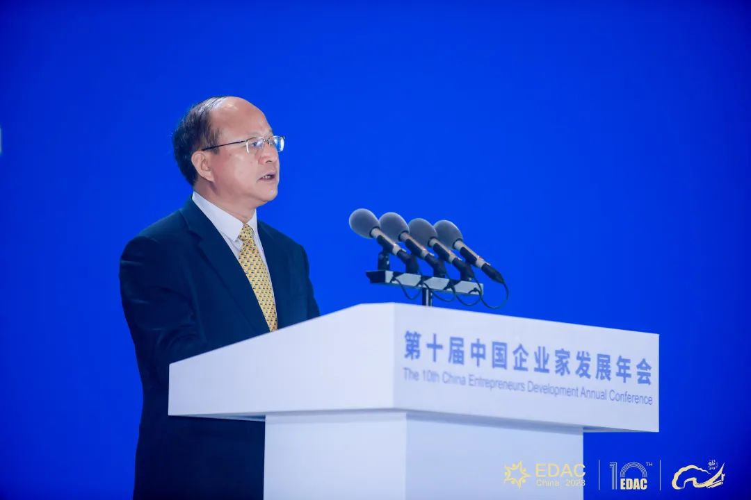 陈昌智致辞并宣布大会开幕。他强调,广大企业家要进一步坚定发展信心,加强自主创新,拓展国际视野,增强家国情怀,为强国建设、民族复兴伟业添砖加瓦、增光添彩。