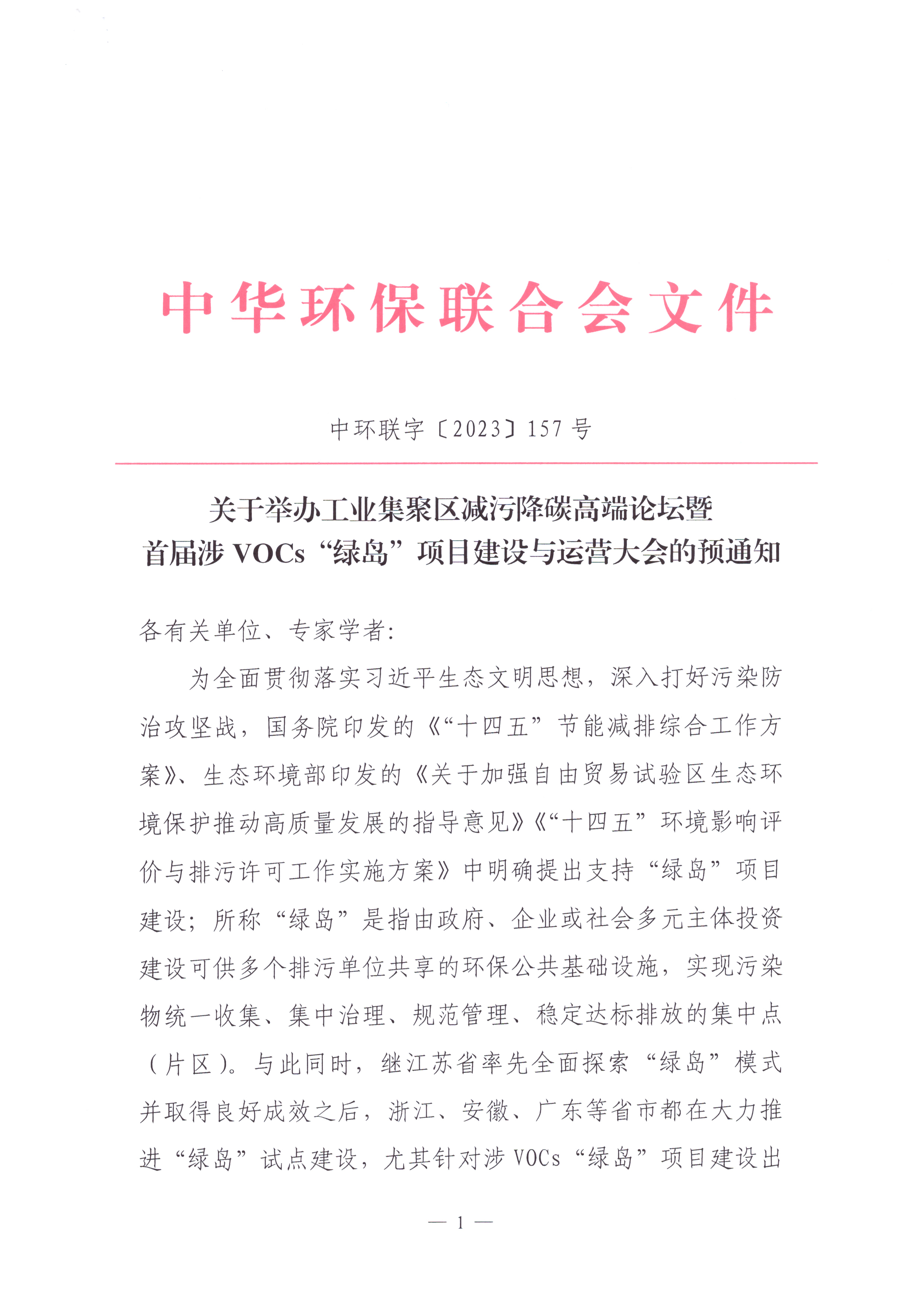关于举办工业集聚区减污降碳高端论坛暨首届涉VOCs“绿岛”项目建设与运营大会的预通知