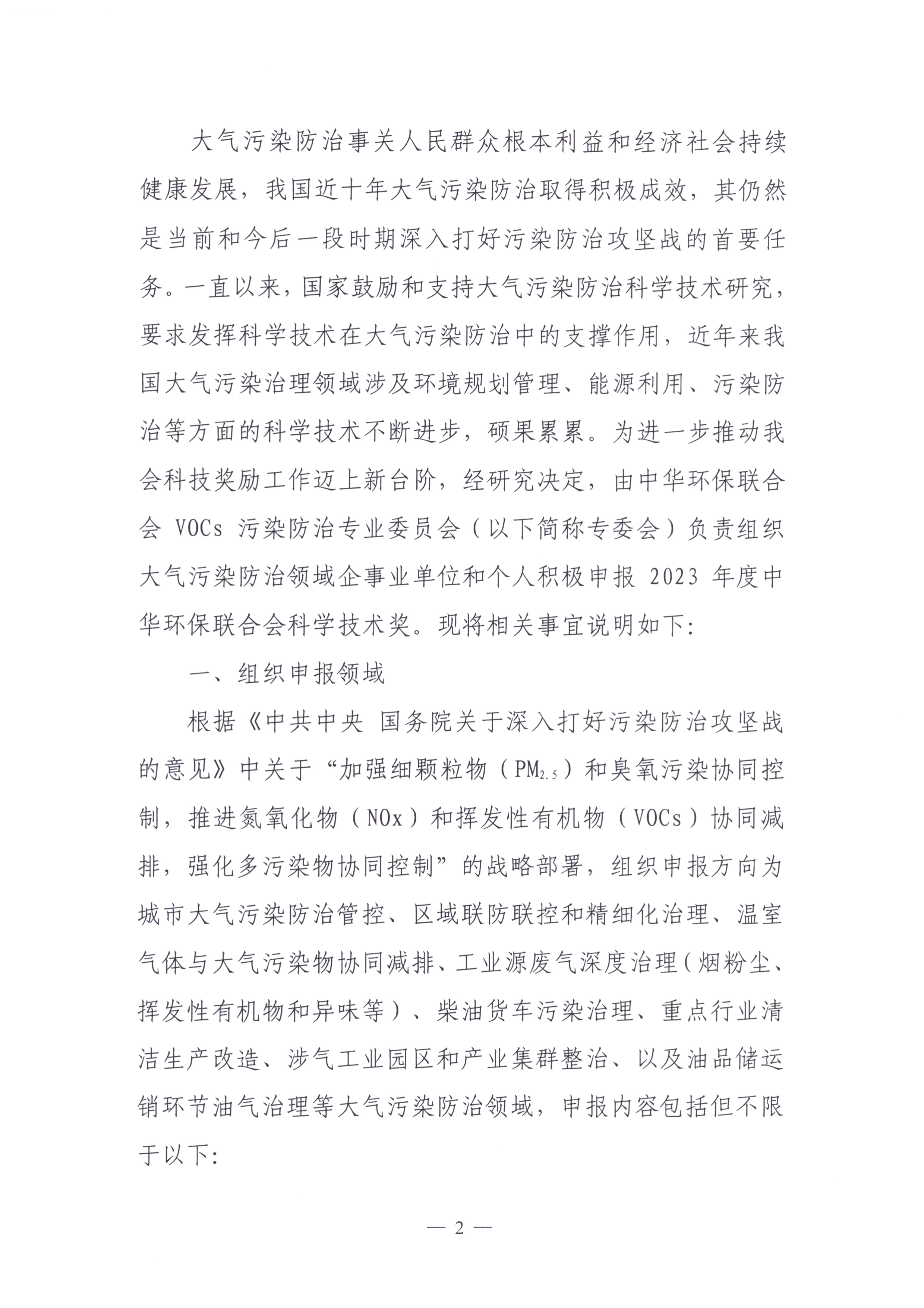 关于组织大气污染防治领域企事业单位和个人申报 “2023年度中华环保联合会科学技术奖”的通知