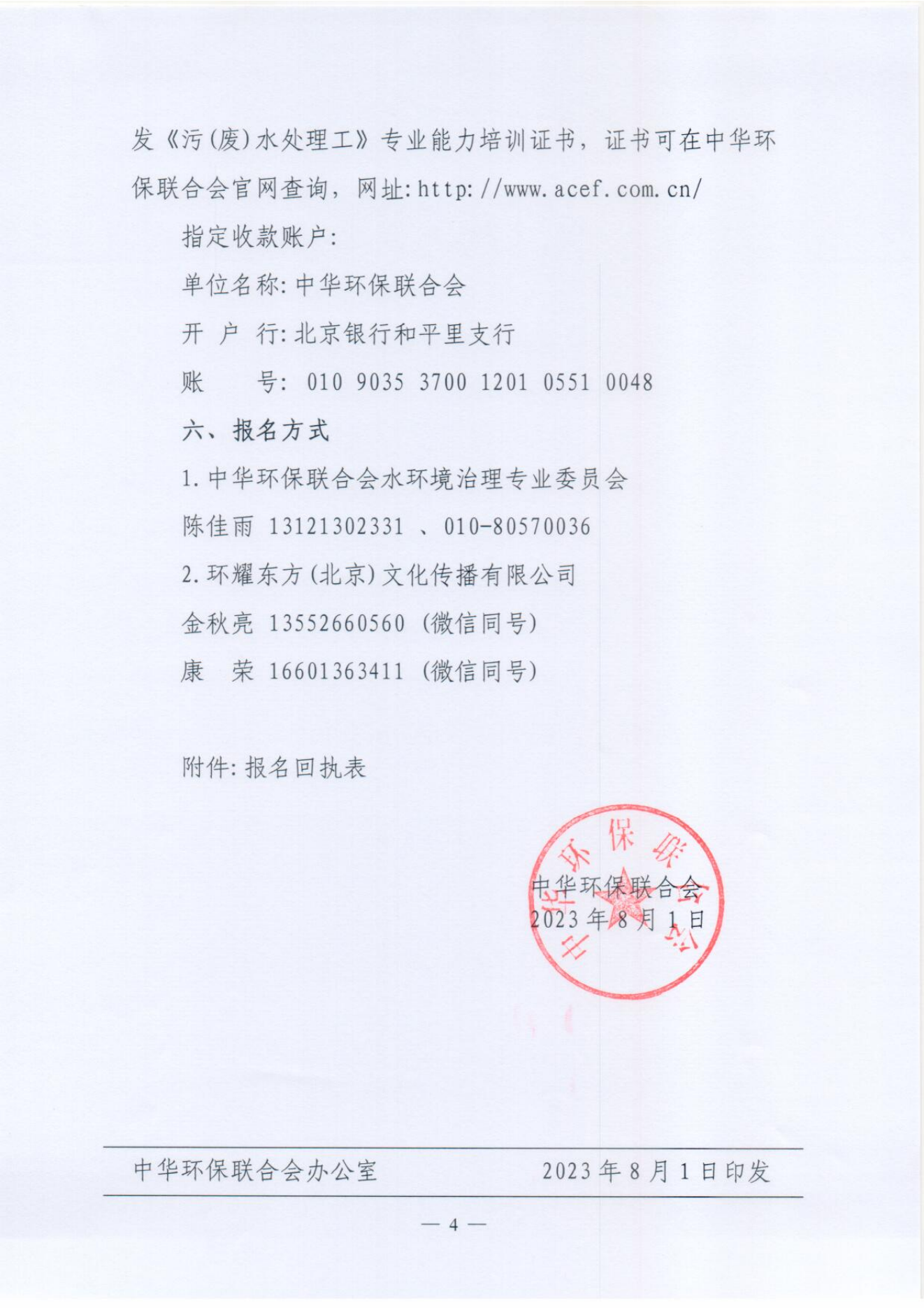 关于开展 2023年度中华环保联合会