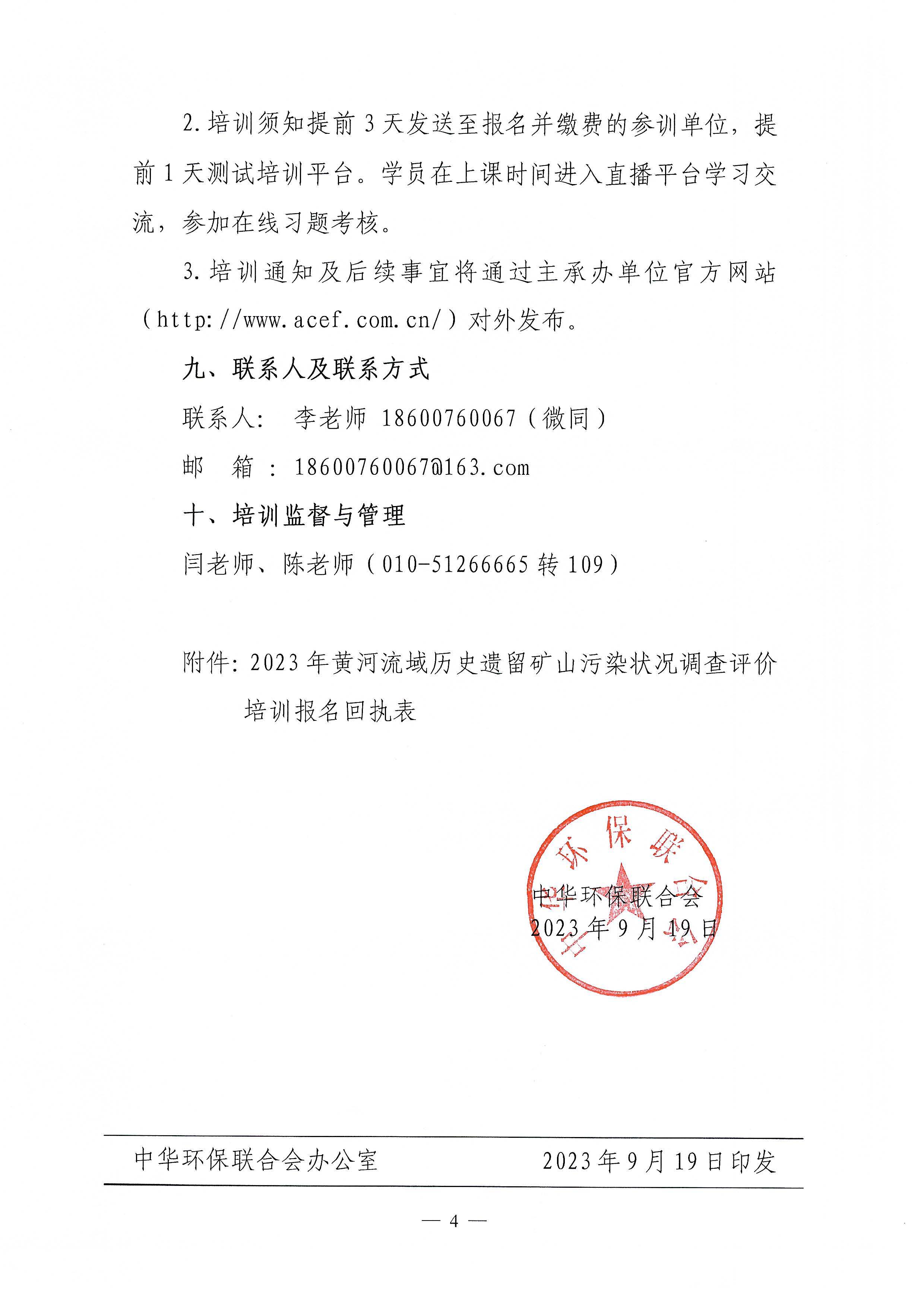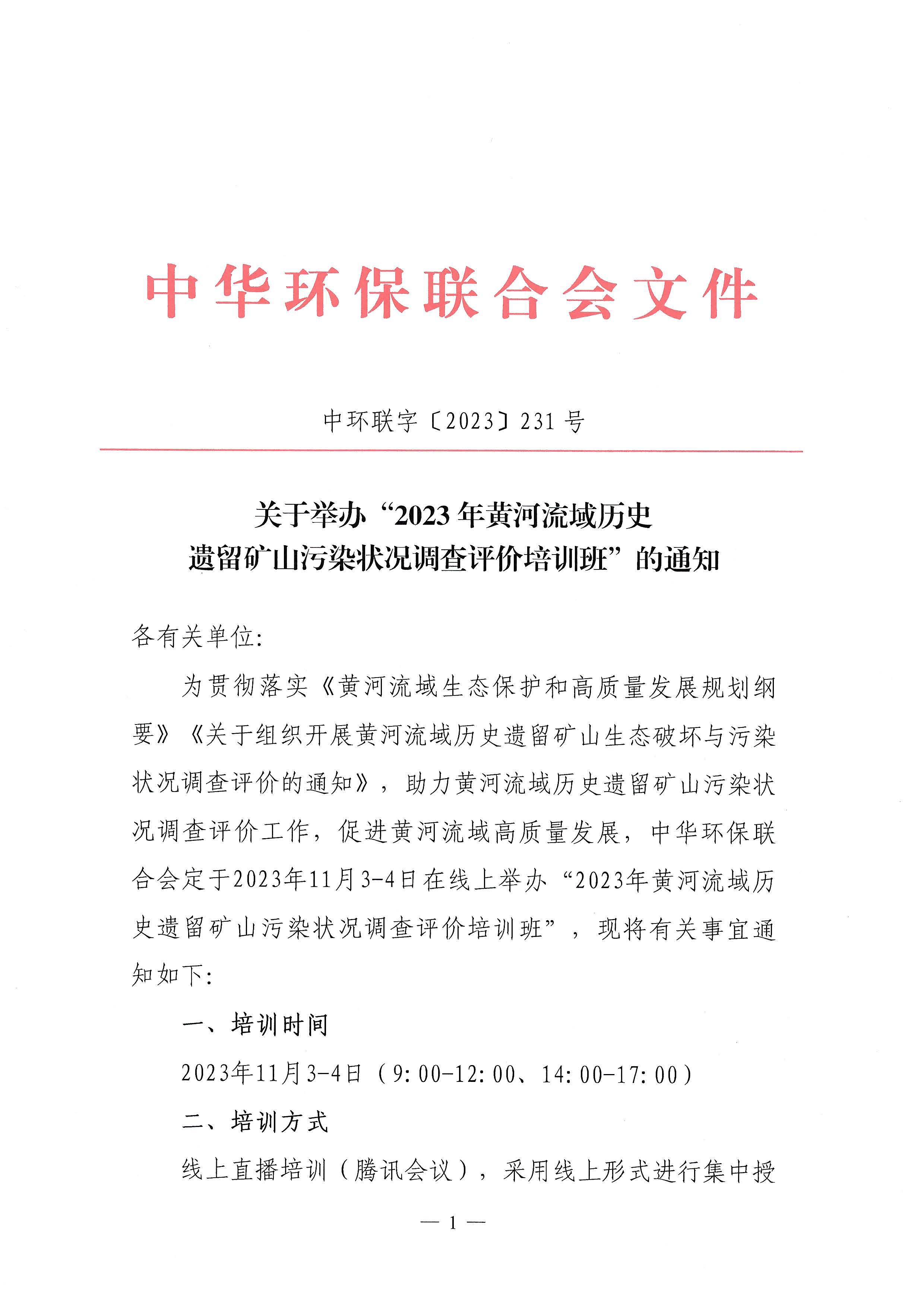 关于举办“2023年黄河流域历史遗留矿山污染状况调查评价培训班”的通知
