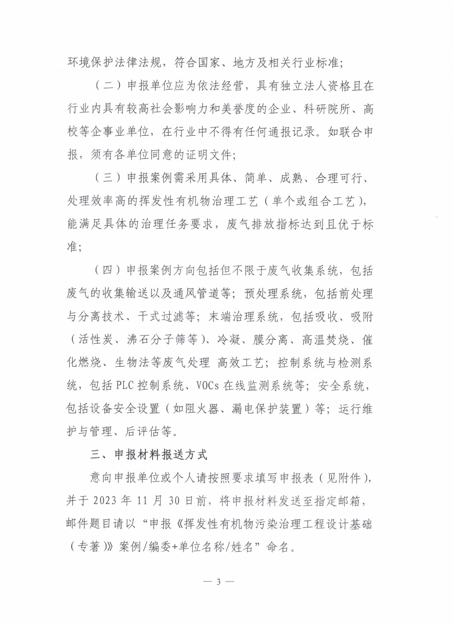 关于公开征集《挥发性有机物污染治理工程设计基础(专著)》编委会成员和典型案例的通知