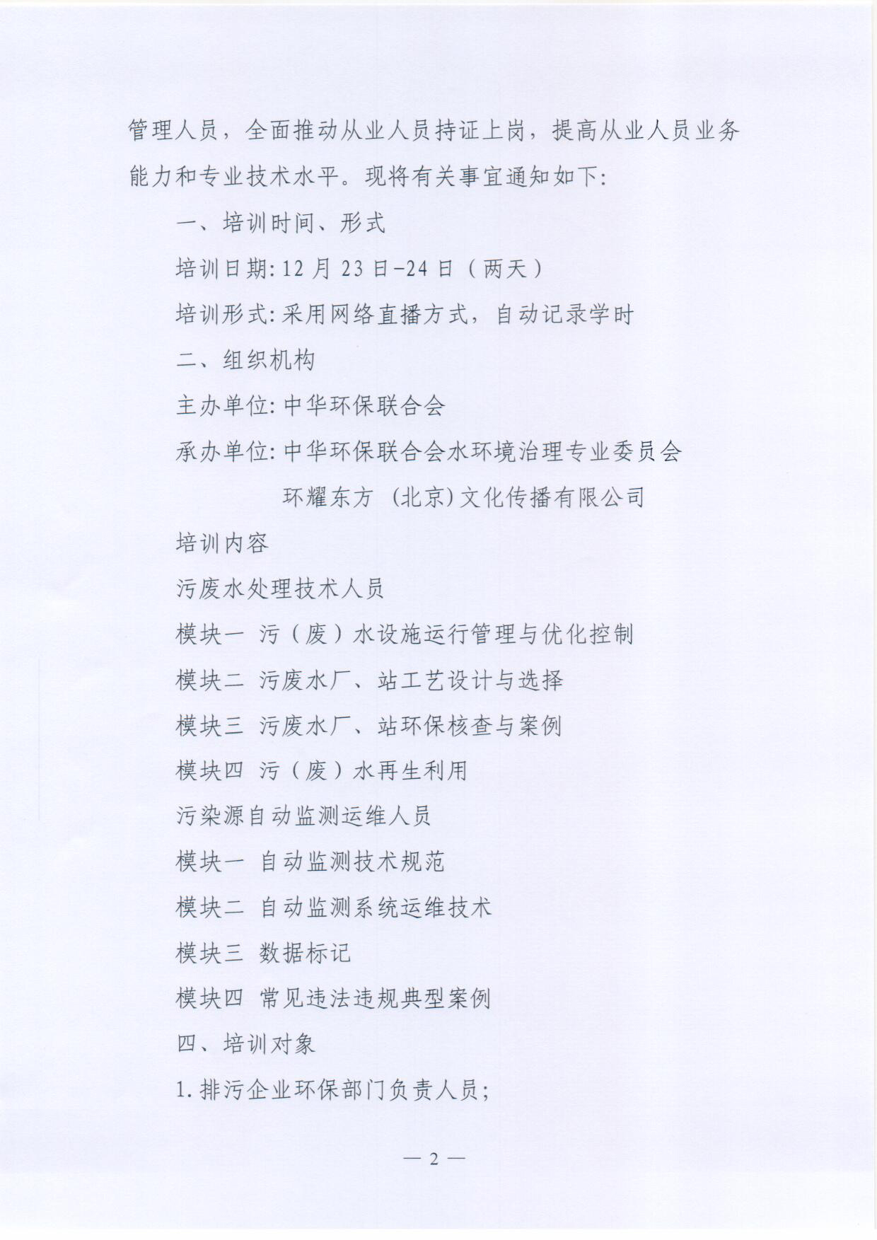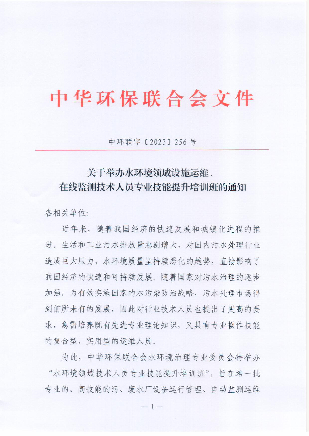 关于举办水环境领域设施运维、在线监测技术人员专业技能提升培训班的通知