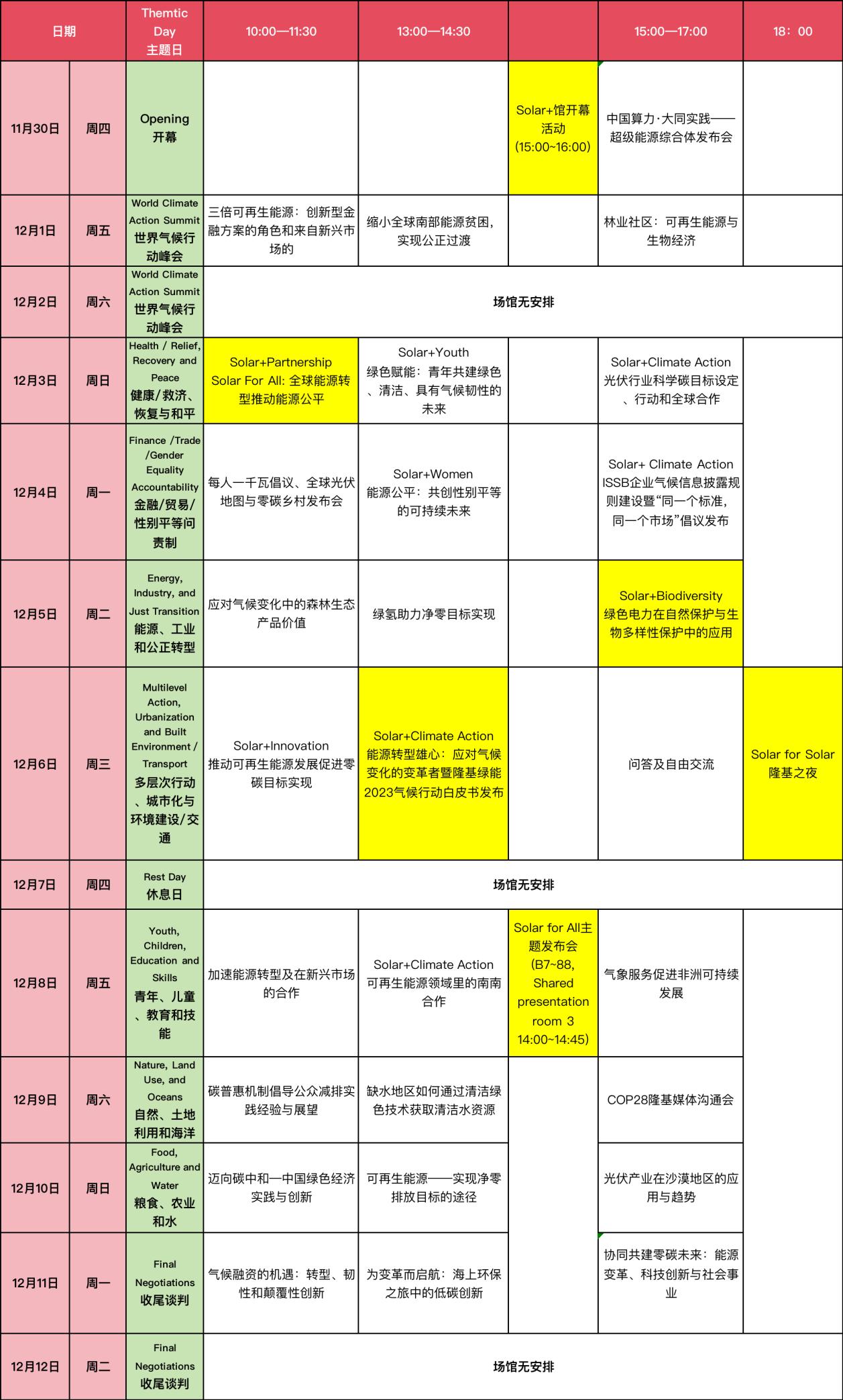 中华环保联合会独立场馆两周活动清单(场馆位置 B7 88, COP28 Blue Zone, Expo City, Dubai. 办公室位置B3 31)