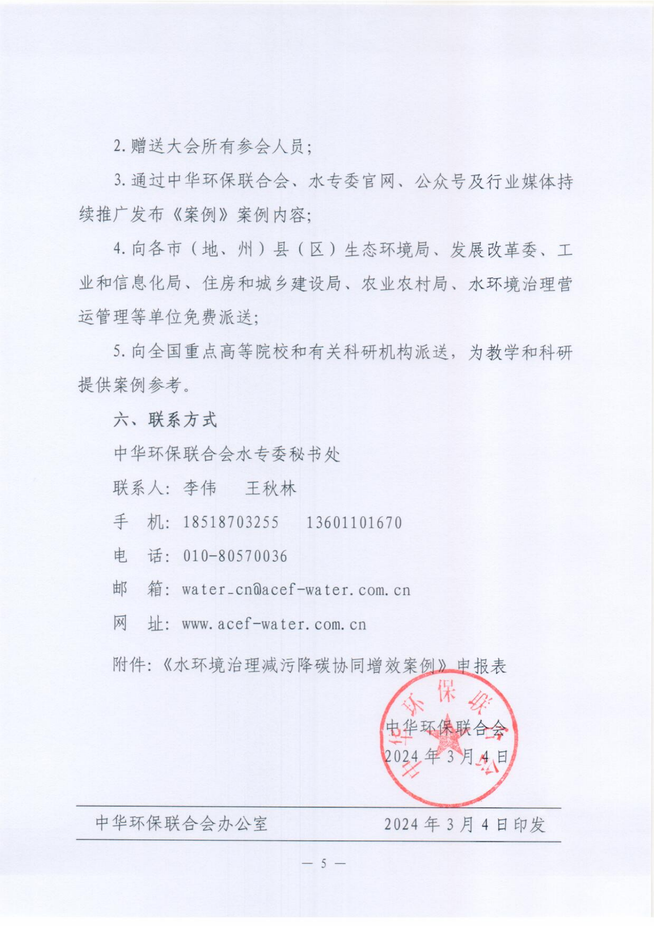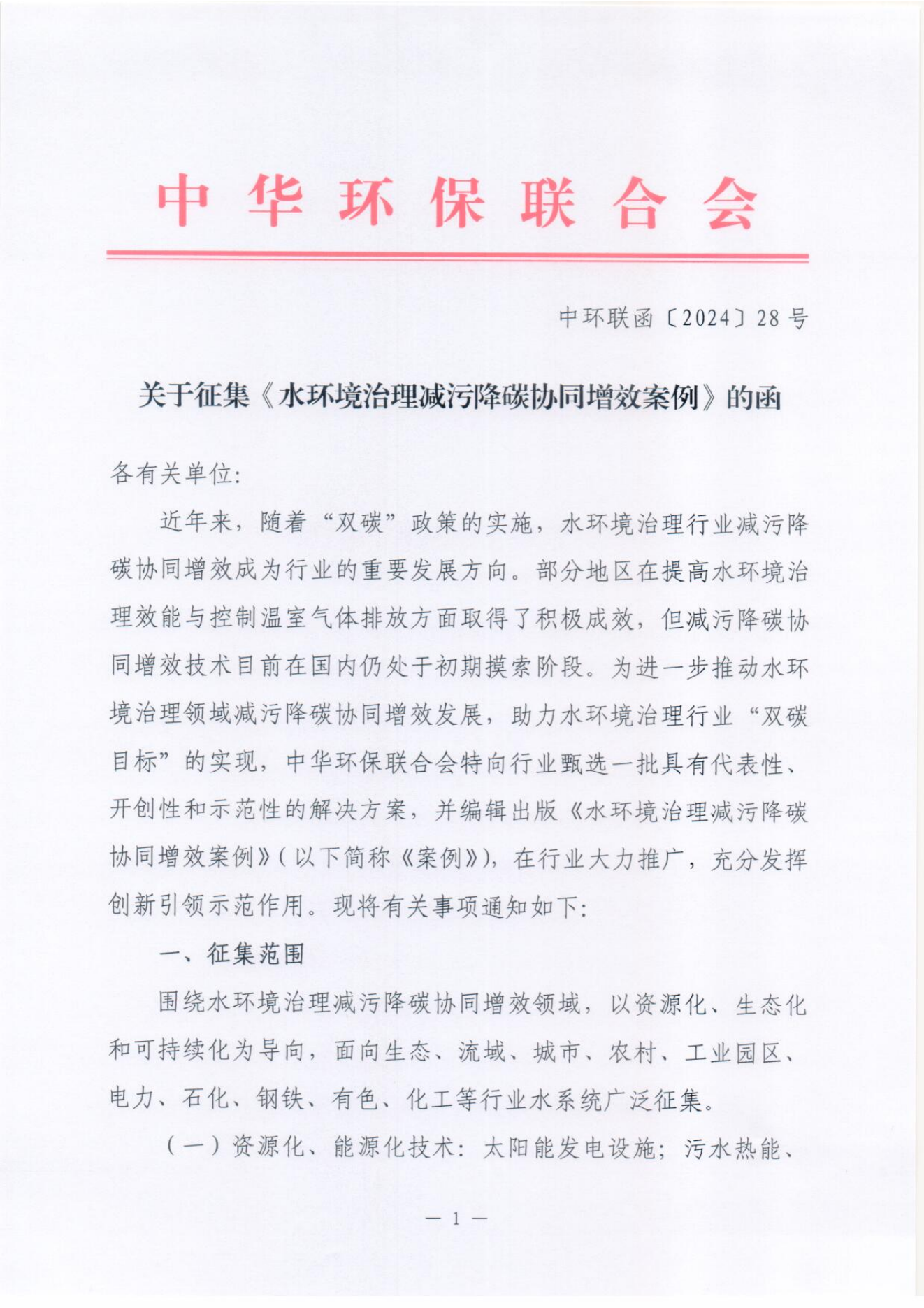 关于征集《水环境治理减污降碳协同增效案例》的函