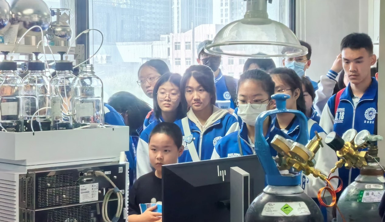 在监测分析方法实验室,三位技术人员引导大家参观实验室中的实验仪器,分别介绍了新污染物的监测和方法研究、GCMS技术在塑化剂等新污染物的监测和分析中的重要作用,讲解了一些样品处理的实验步骤,通过样品处理和测定步骤了解样品中塑化剂的种类和浓度以及对环境和人体的潜在风险,并针对小卫士们提出的问题进行答疑。