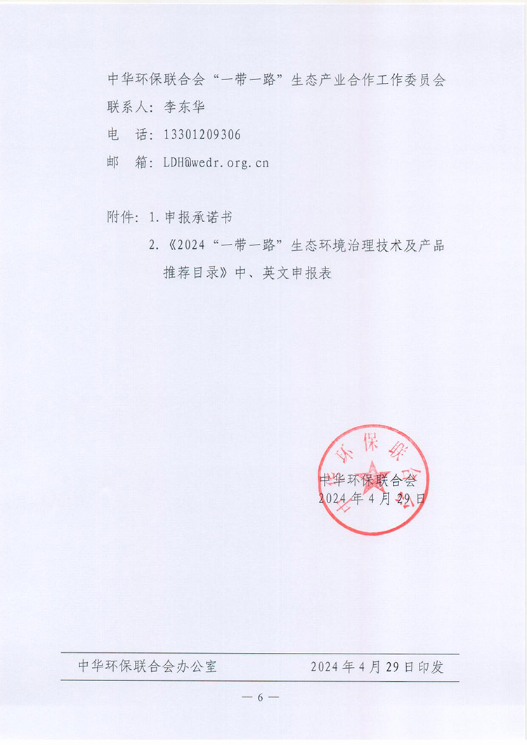 2、2024“一带一路”生态环境治理技术及产品推荐目录申报表
