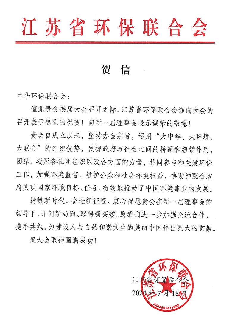 贺信 | 江苏省环保联合会