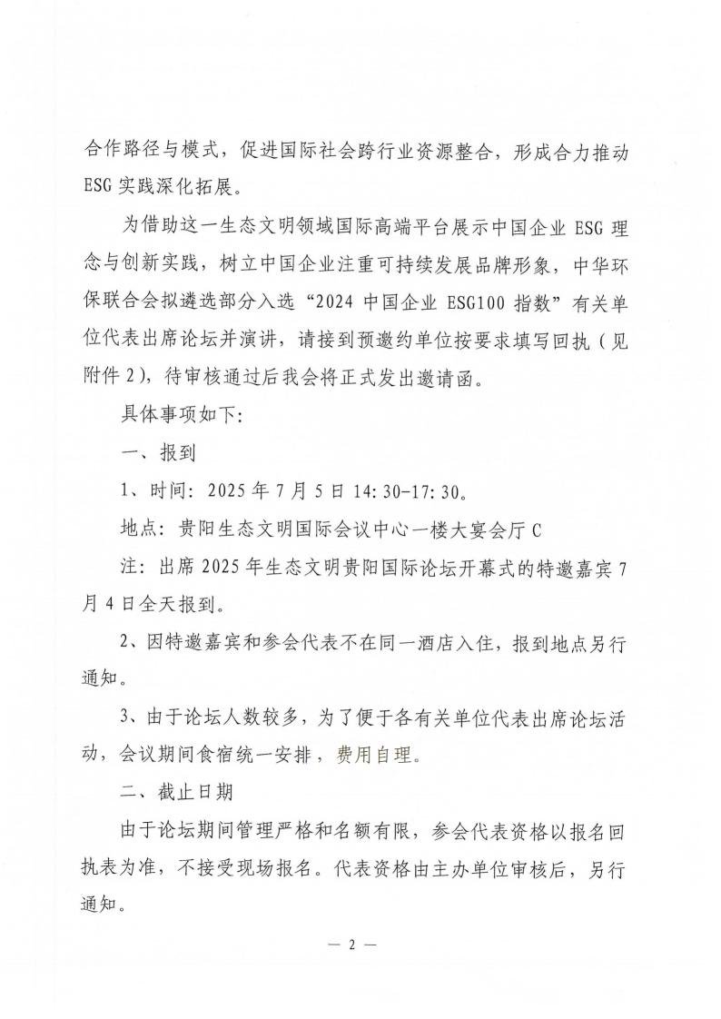 关于 2025生态文明贵阳国际论坛·ESG主题论坛预邀函