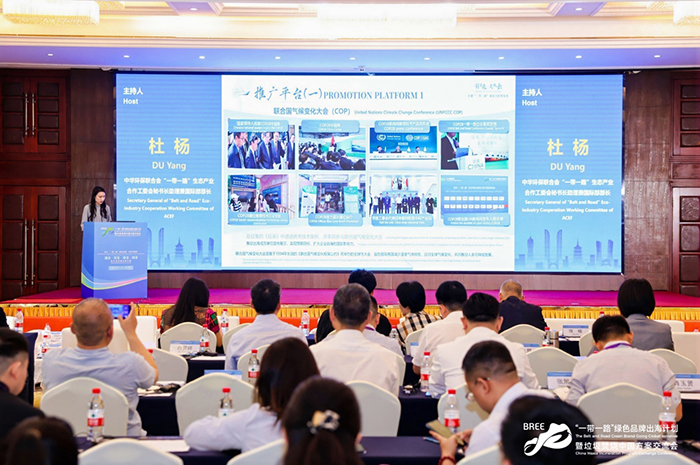 中华环保联合会“一带一路”生态产业合作工作委员会秘书长助理兼国际部部长杜杨主持主题发言环节并介绍了“一带一路”绿色品牌出海计划概况。该计划以技术产品为核心,通过公开征集并筛选出一系列卓越的生态环境治理技术或产品。借助联合会的宣传推广力量,并结合交流实践活动,旨在中国企业搭建了一座通往国际市场的桥梁,推动中国企业的技术或产品走向世界,实现国际生态产业合作成果的落地。
