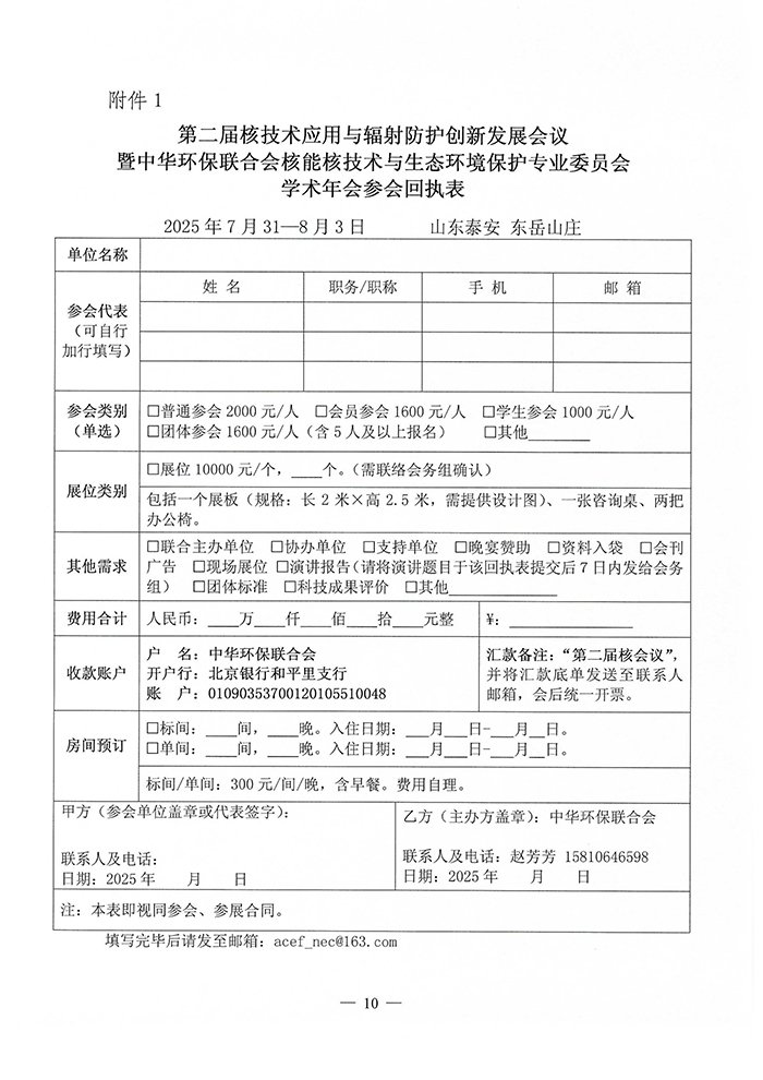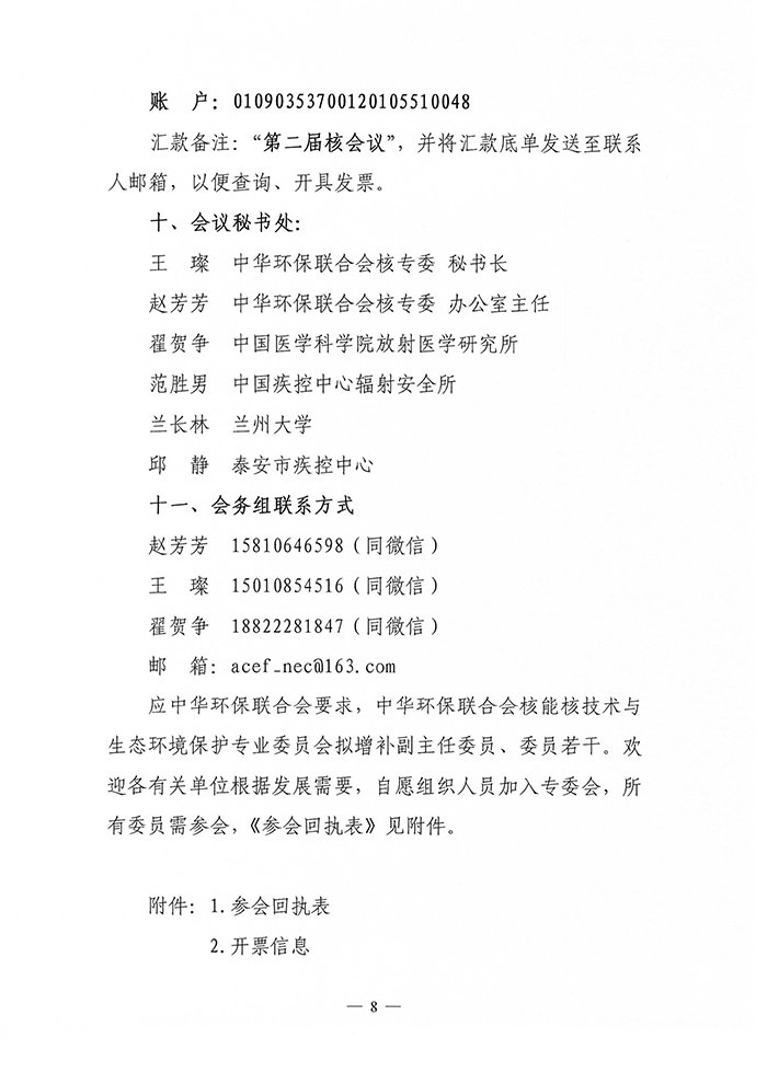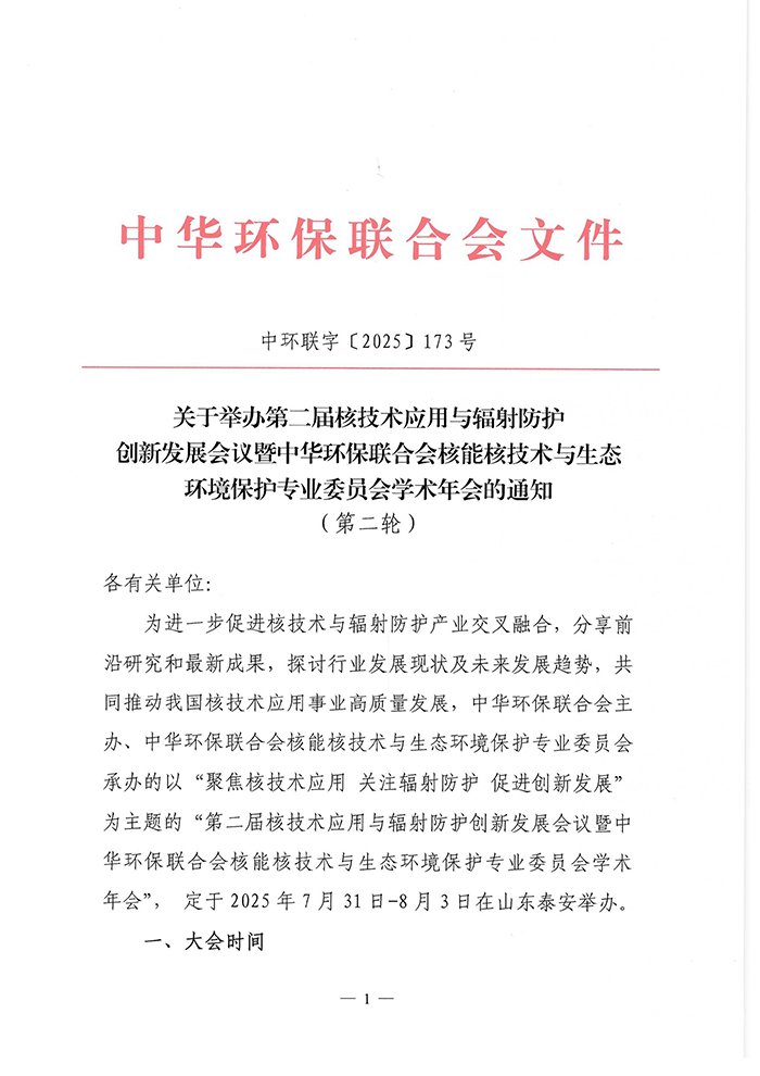 关于举办第二届核技术应用与辐射防护创新发展会议暨中华环保联合会核能核技术与生态环境保护专业委员会学术年会的通知 (第二轮)