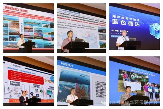 主题会议环节由中国生态文明研究与促进会副会长刘青松主持,学界与业界权威专家从多个角度深度分享海洋生态环境保护。中国工程院院士侯立安线上解读“海洋可持续发展与新型膜材料研发”前沿方向,中国科学院院士焦念志线上剖析“海洋负排放与全球气候变化应对”核心逻辑;中国环境新闻工作协会主席刘友宾、中华环保联合会副主席别涛、中国海洋法学会常务副会长张海文等嘉宾,分别从海洋生态文化传播、海洋保护法治建设、全球海洋治理新趋势及中国应对等维度展开论述,为海洋保护提供理论与政策参考。生态环境部海洋生态环境司朱焰炉处长、山东省生态环境厅原二级巡视员张金智、生态环境部环境规划院海洋生态环境管理研究中心姚瑞华主任围绕美丽海湾建设、零碳岛屿实践、“十五五”海洋生态环保形势等具体议题,为海洋保护提供实践参考与工作建议。此外,浙江蓝景科技有限公司叶诚、海南热带海洋学院党委常委(副校长)那广水介绍了“蓝色循环”海洋塑料废弃物治理、抗生素抗性基因等治理模式与技术的新进展。海南省蓝丝带协会副会长韩玉分享了社会组织在生态环境保护工作中的实践与探索。