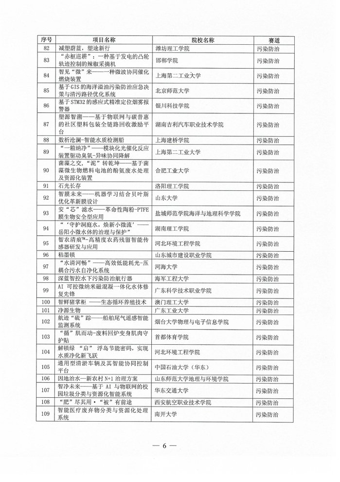 关于大学生环保创新创业大赛合规参赛项目名单的公示