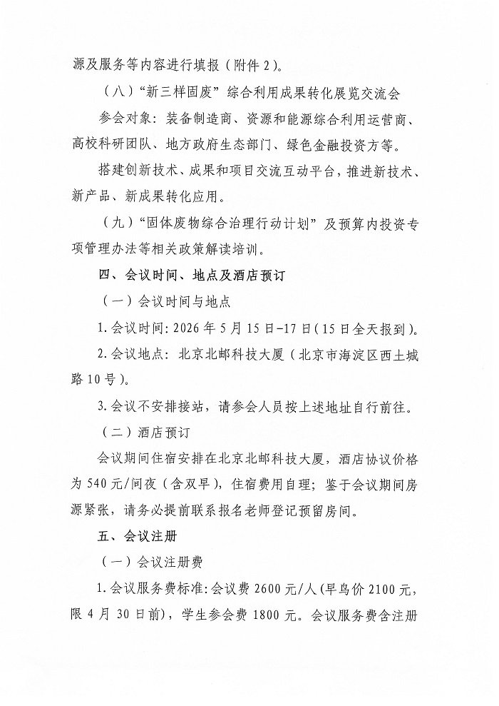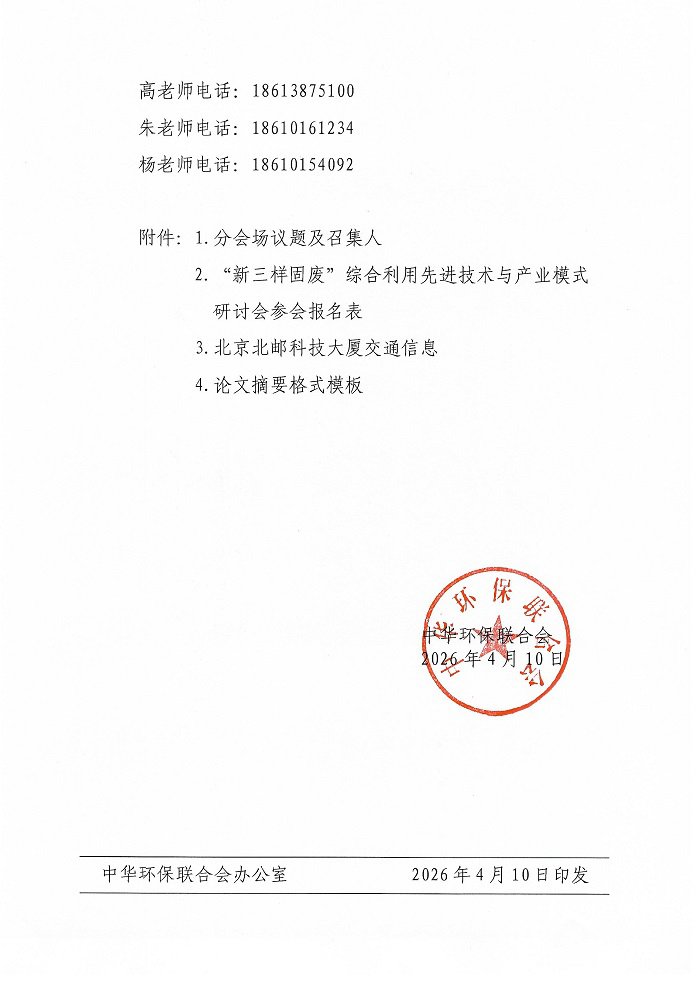 关于召开中华环保联合会资源循环利用专业委员会成立大会暨“新三样固废”综合利用先进技术与产业模式研讨会的通知(第二轮)